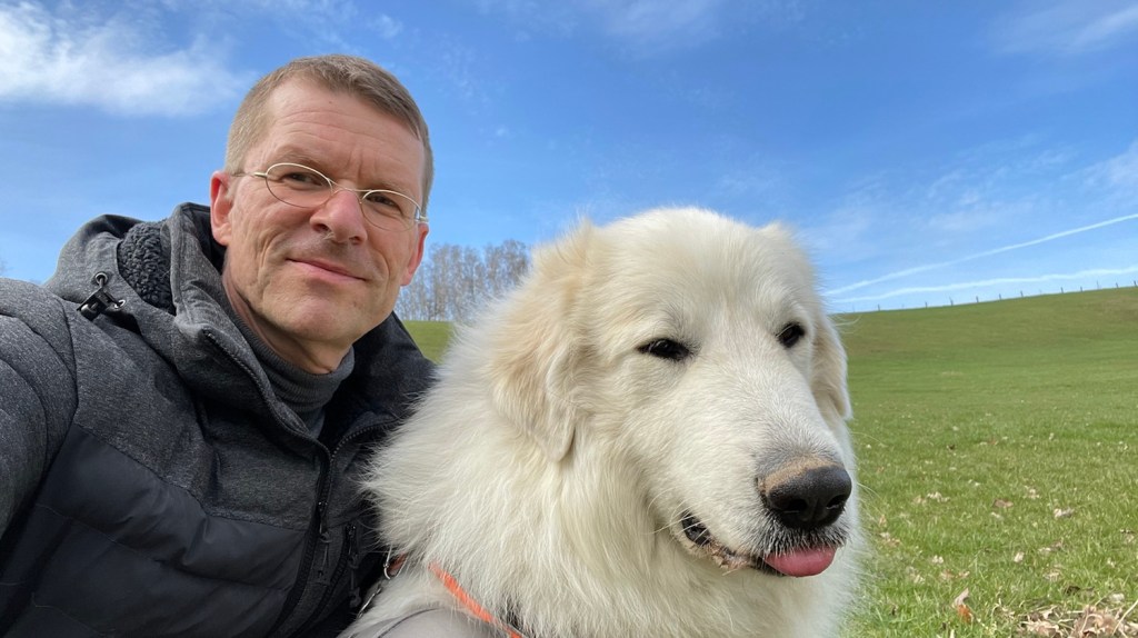 Nachmittags bin ich dann mit meinem großen Mensch spazieren gegangen. Der ist nämlich heute zeitig von seiner Arbeit nach Hause gekommen. Wir sind erstmal zu meiner großen Feldwiese gegangen und dann quer da drüber.