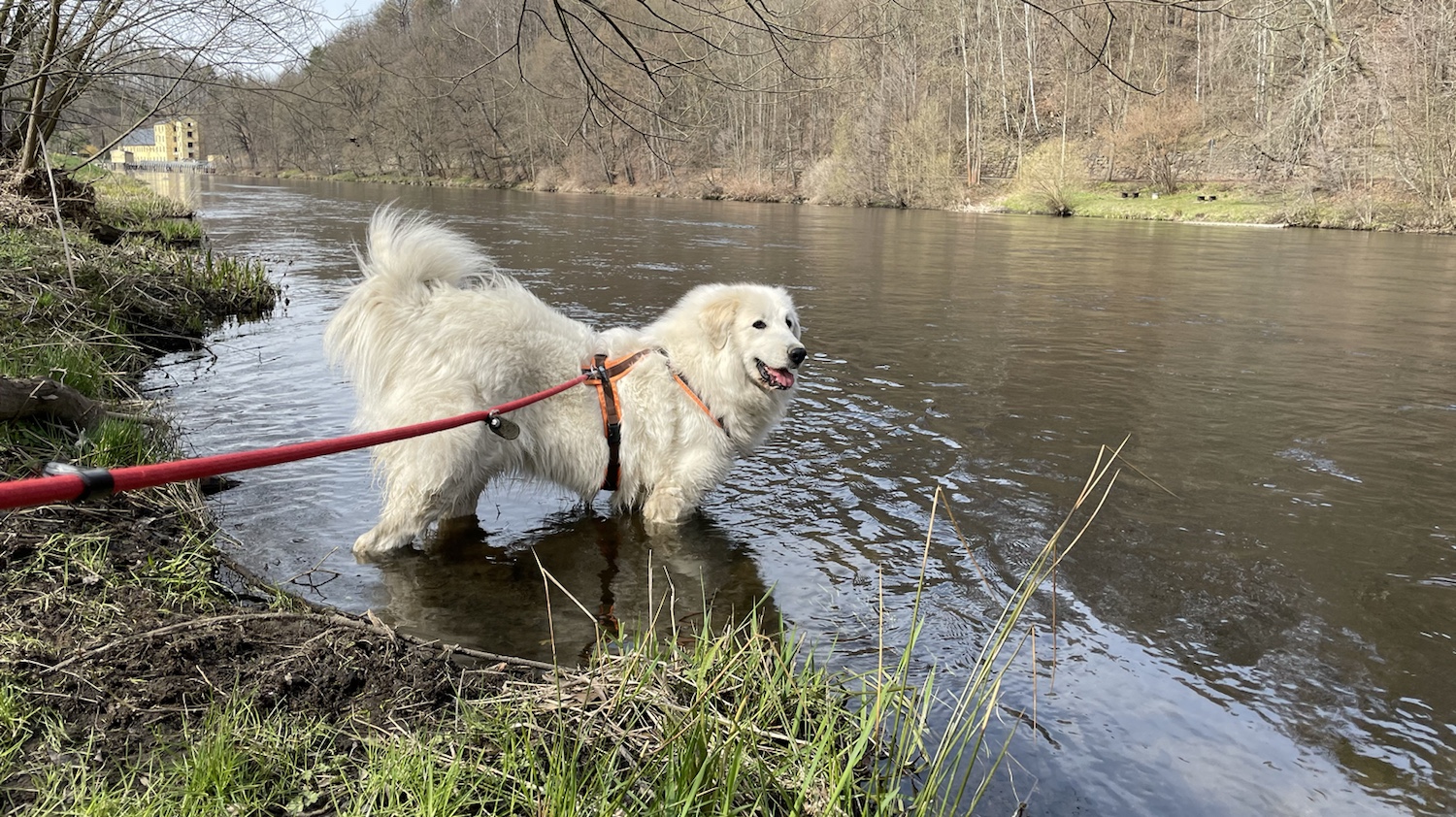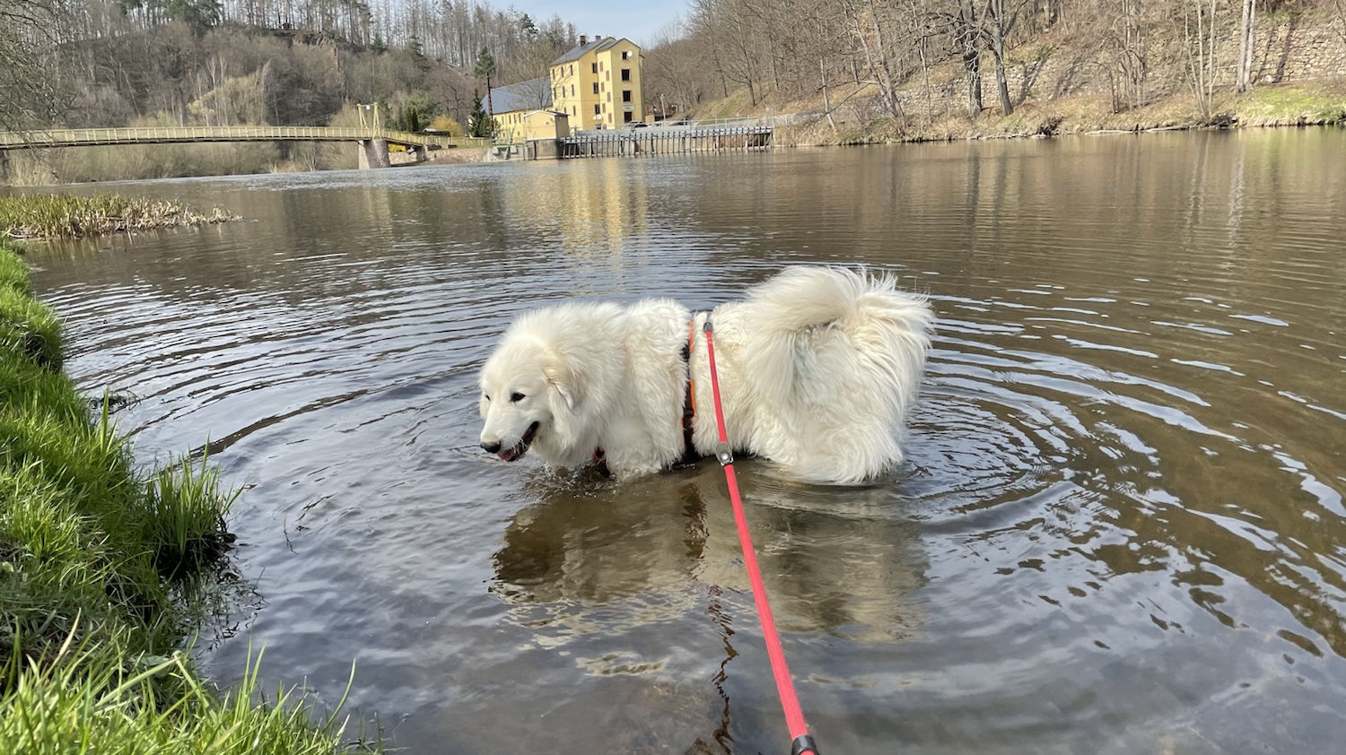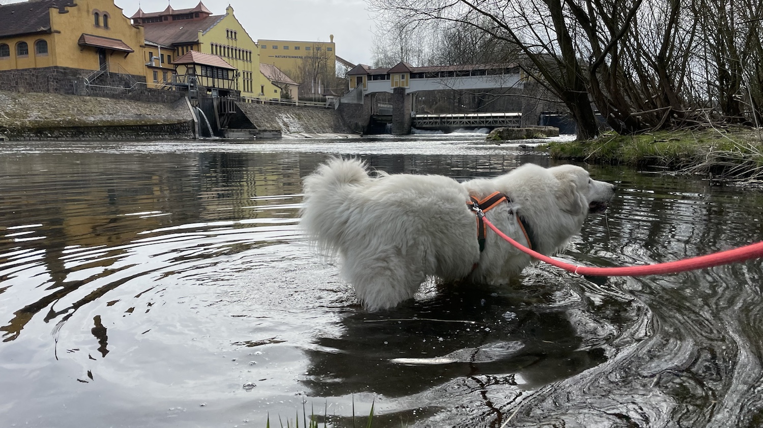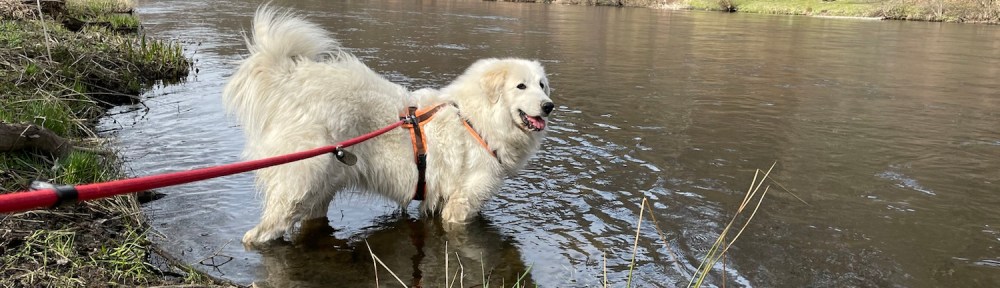Den Kalle habe ich heute nicht getroffen. Dafür bin ich in der Tschooo-Pauuu baden gewesen. Erst an der kleinen Treppe. Dann noch weiter hinten – stromaufwärts sagt man – da ist auch nochmal eine schöne Stelle und dann noch am Wasserwerk. Da war heute niemand und so konnte ich da auch nochmal ins Wasser.