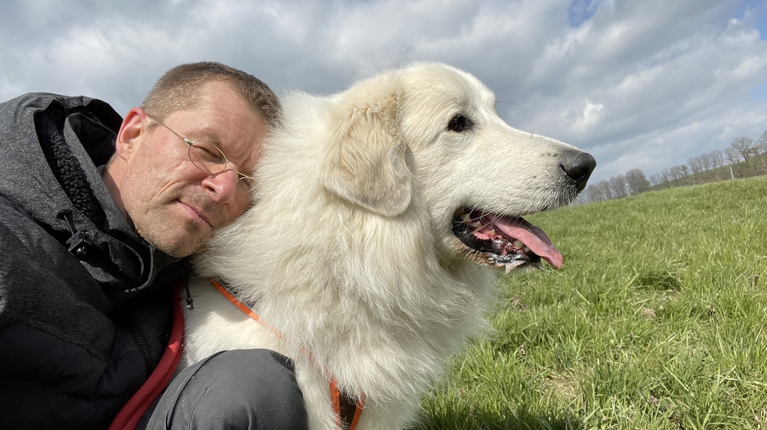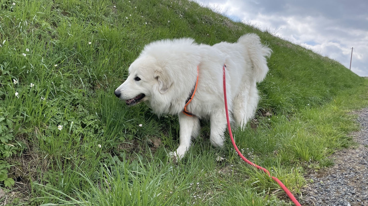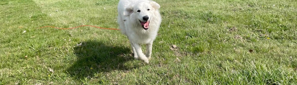 Wir sind dann schräg über die große Wiese den Hang hoch gelaufen. Obwohl ich lieber weiter durch den Wald gelaufen wäre. Aber mein großer Mensch ist ein richtiger dicker Kopf. Das hat er von mir gelernt. Und das ist doof. Weiiil, ich bin die Pyri!