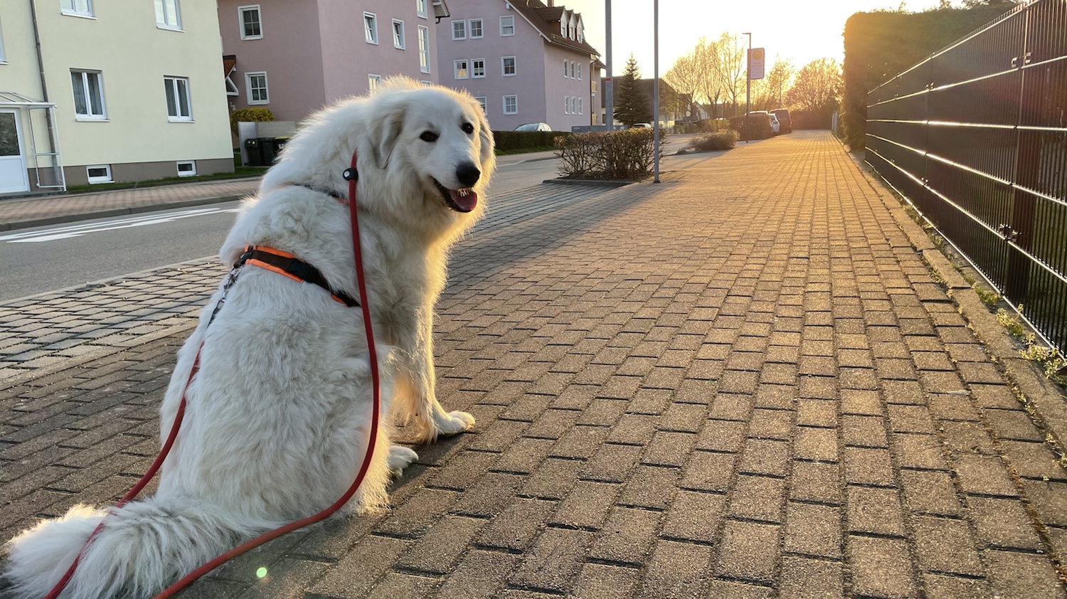 Dannnistbes schon ganz schön spät gewesen aber wir sind trotzdem noch abendspazierengegangen. Durch mein Wohngebiet. Mein großer Mensch und ich. Und heute haben wir auch noch die Frau Nachbarin mitgenommen. Und da sind wir die große Runde gelaufen.