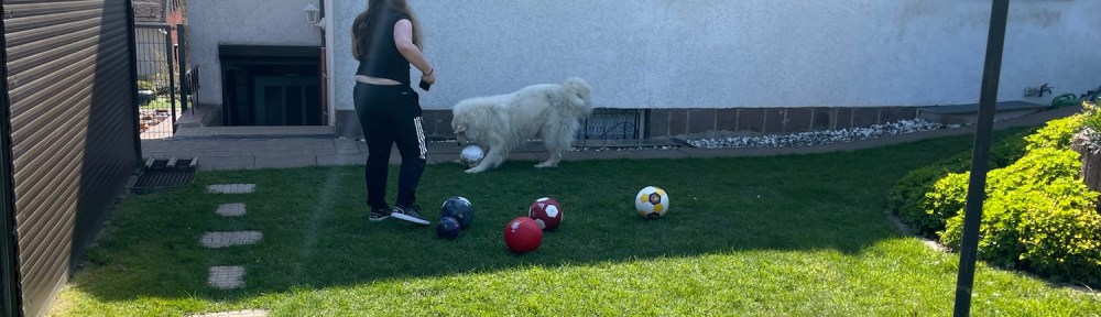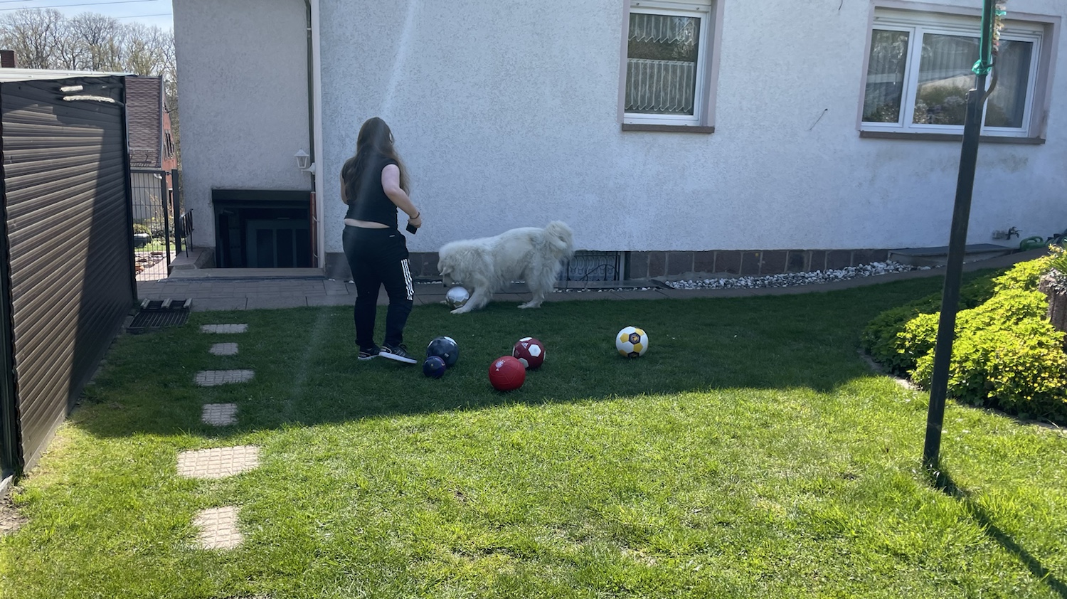 Meine großen Menschen haben noch eine Kiste aufgebaut. In meinem Garten. Auf meinem Liegebeet. Aber davor haben sie genug Platz für mich gelassen. Ich habe geholfen. Beim Auspacken und Kartons zerlegen und ich habe auch gebuddelt. Dann habe ich mit meiner großen Menschenschwester Ball gespielt. Das war total lustig.