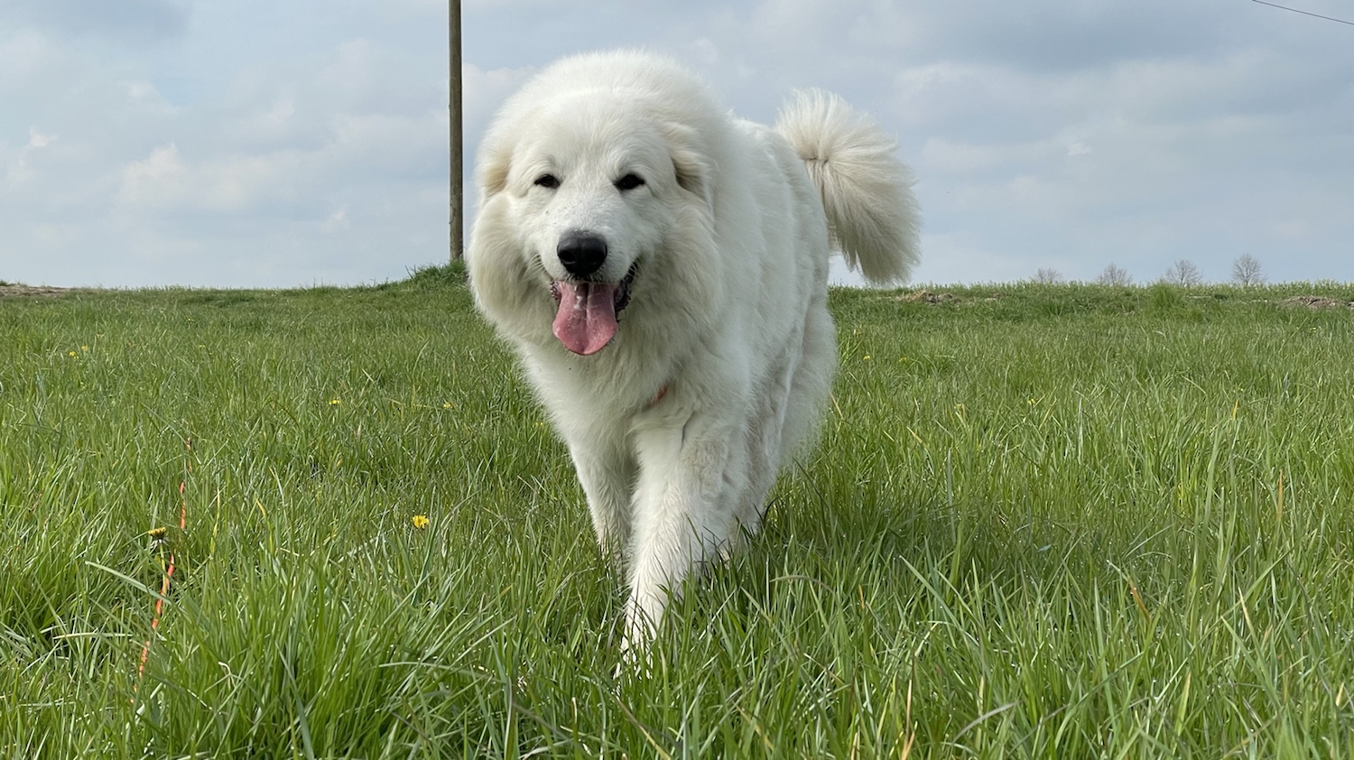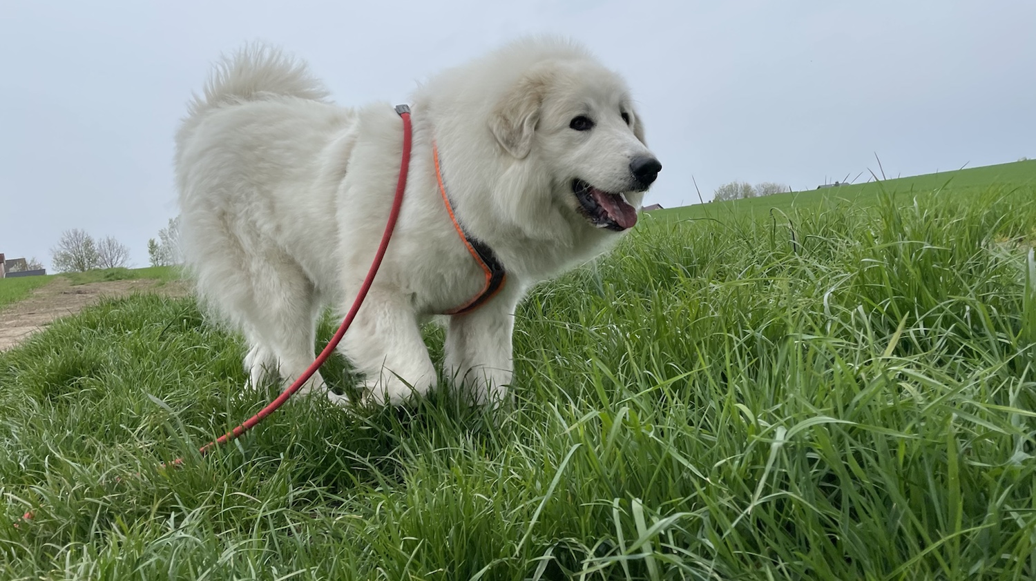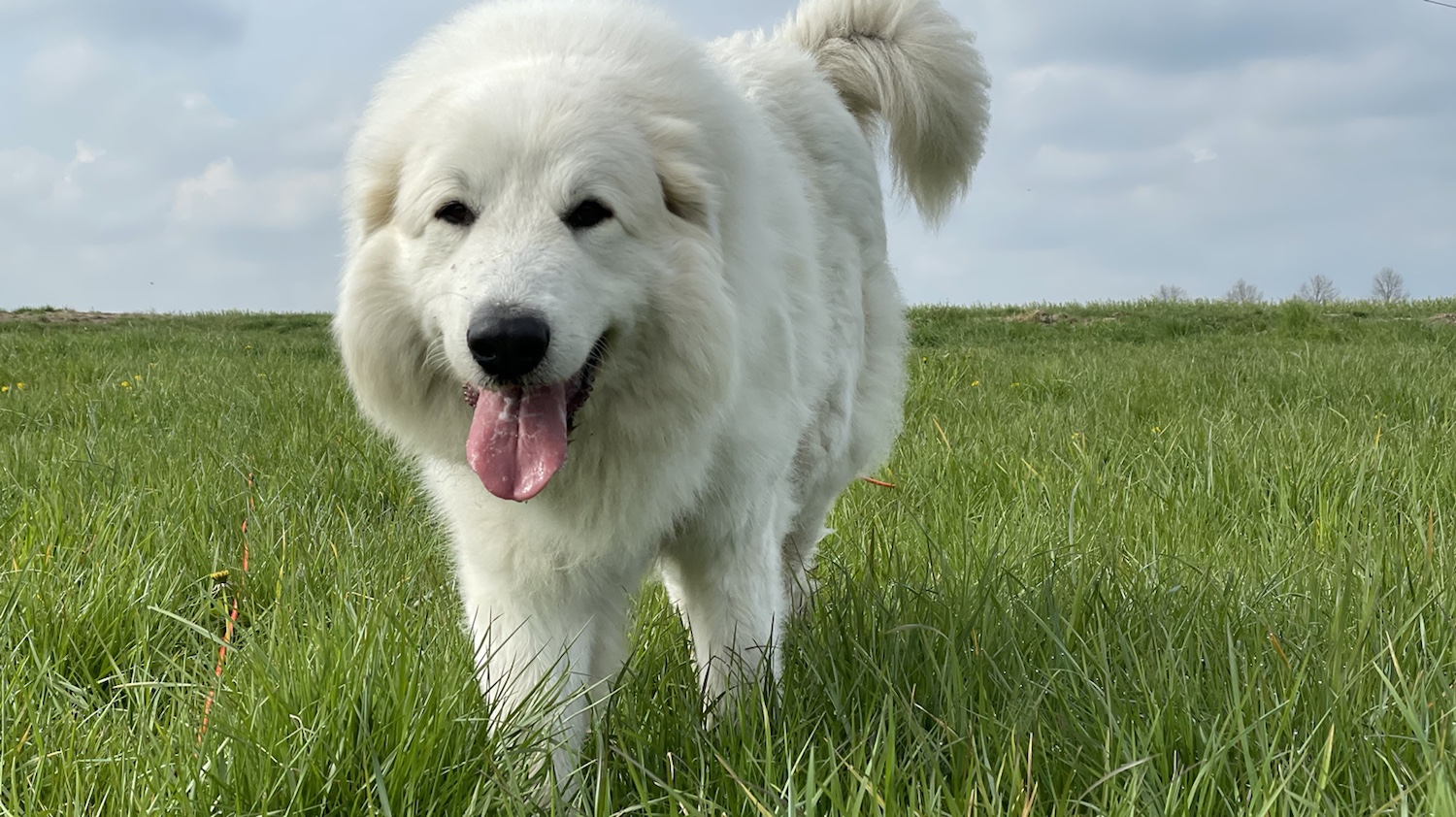 Wir sind dann über die Wiese und den Feldweg lang über das ganze Feld. Da sind uns Leute begegnet. Die haben die Bella bestaunt. Weiiil, ich bin so groß und auch ziemlich schön. Ich bin nämlich eine Pyriprinzessin. Annastasia Isabella Prinzessin Idefix vom Ehrenberger Hof, das ist mein Name, aber Bella genügt!