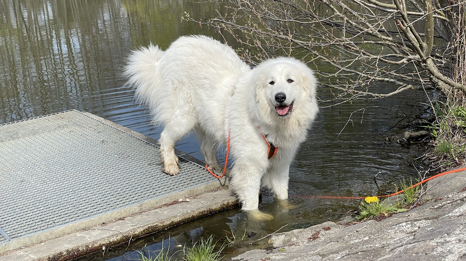 Ich bin mit meinem großen Mensch über die Wiese zum Skihang gegangen und dann weiter den kleinen Waldweg lang zum Teich. Wir sind vom Teich aus dann an der kleinen Wiese vorbei und über die große Wiese. Da habe ich einen kleinen schwarzen Hund getroffen. Einen Junge und wir haben uns angeschnuffelt.