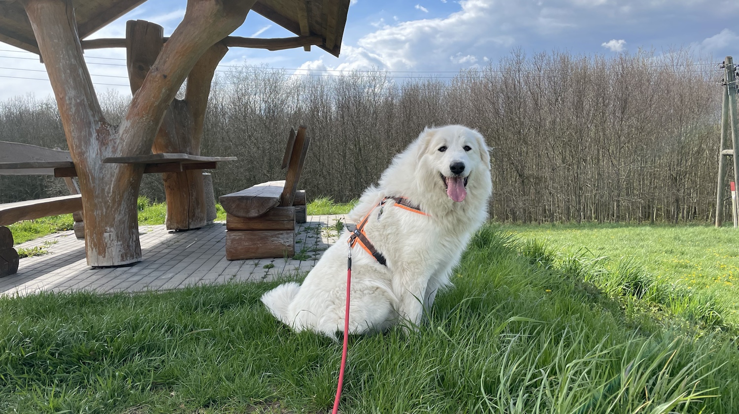 Mein großer Mensch muß mal den Pool langsam aufdeckeln. Der ist nämlich immer noch zu. Aber mein großer Mensch meint, es ist immer noch zu kalt. Mir nicht. Ich habe schönes dickes Pyrikuschelfell. Das ist ganz warm. Und champagnercremeweißfarben. Das sieht sehr schön aus!