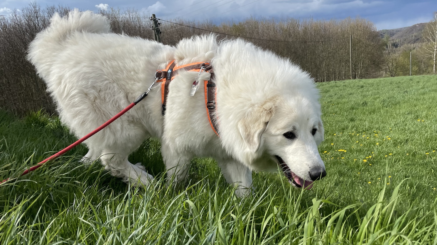 In die Siedlung sind wir gelaufen. Ich war aber erstmal ganzganzganz aufgeregt. Weiiil, ich habe was geschnuffelt. Und da war ich aufgeregt. Ganz lange. Aber dann in der Siedlung war ich wieder ruhig. Und wir sind eine schöne große Runde gelaufen. Meine liebe Sonne war auch dabei.