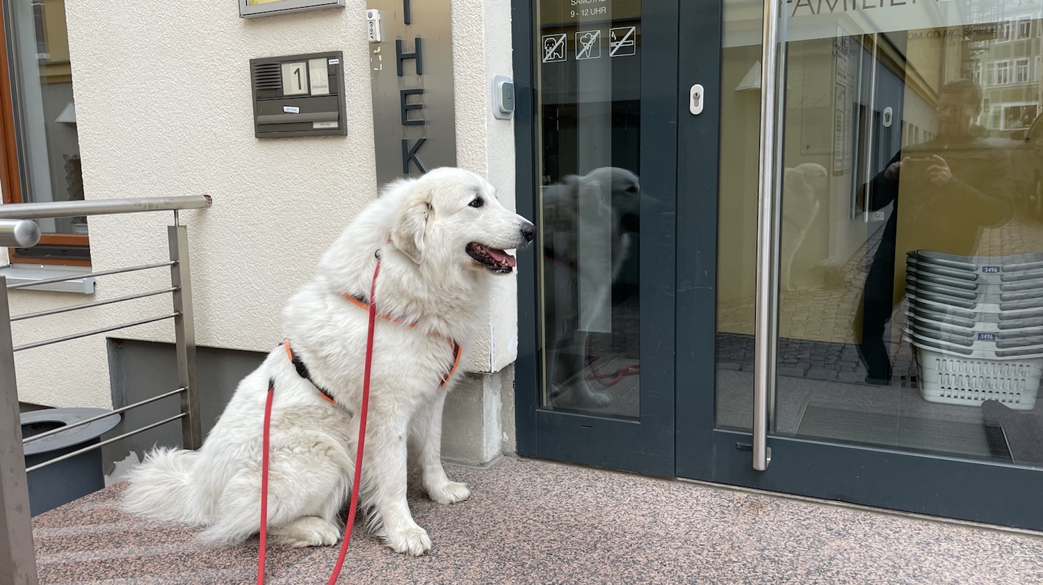 Dann hat mich mein großer Mensch nochmal angezogen und wir sind abendspazierengegangen. In die große Stadt. Meine große Menschenschwester von ihrer Arbeit abholen. Da war ich gar nicht mehr aufgeregt und bin ganz brav gelaufen.