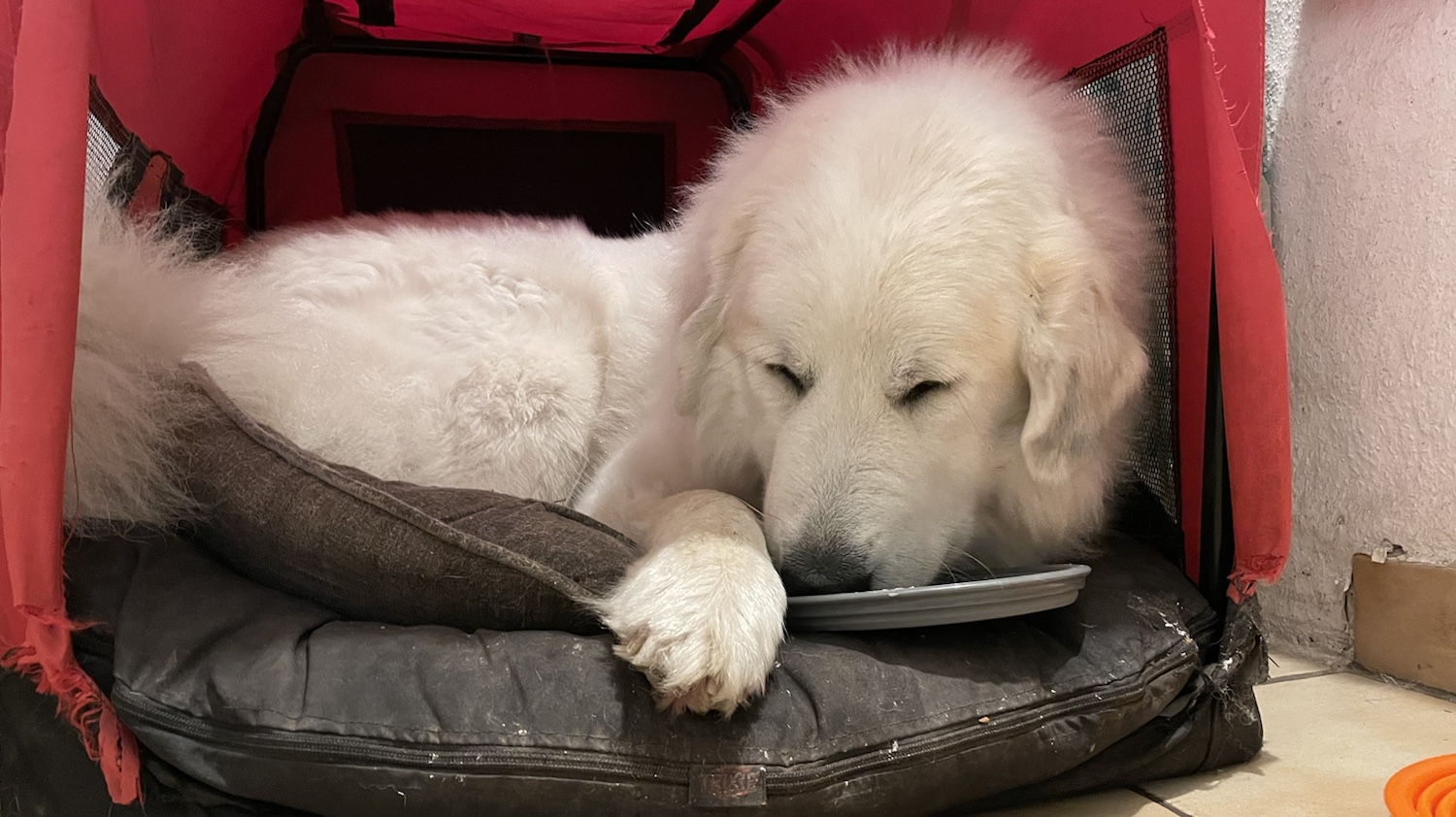 Ich bin zu Hause gleich in meiner Kellerwohnung geblieben. Meine Menschen haben noch aufgeräumt, ich habe meine Pyrizähnchen geputzt bekommen und dann auch noch leckere Knabbereien. Und dann habe ich mich in mein kleines rotes Ferienhäuschen gekuschelt und schön geschlummert. Gute Nacht! 🐶👸🏼