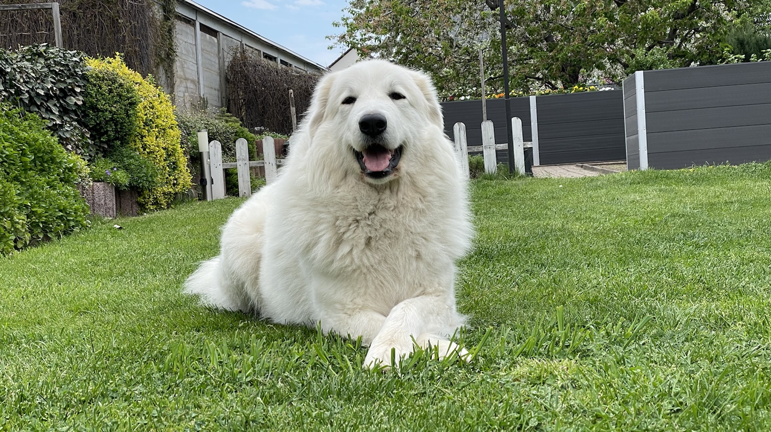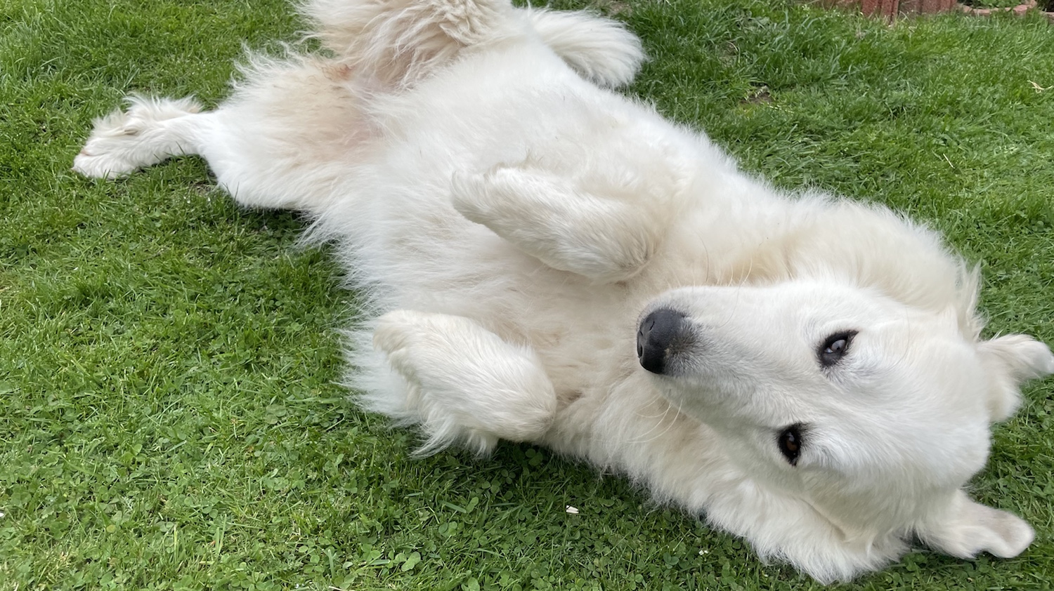 Heute war wieder ganz schönes Wetter. Da bin ich den ganzen Tag mit Menschenopi und Menschenomi in meinem Garten gewesen. Und meine liebe Sonne war auch da. Die hat mir schönen Schatten gemacht. Und da habe ich mich hingelegt. In den Schatten.