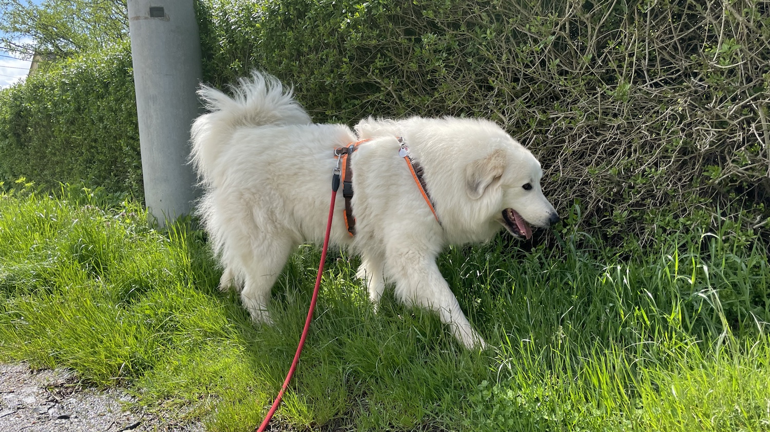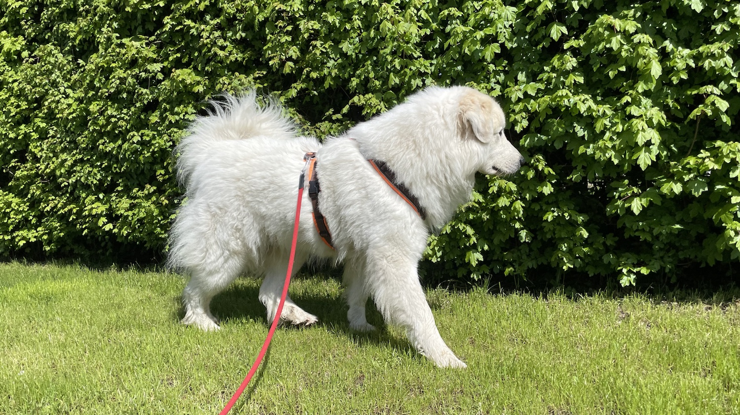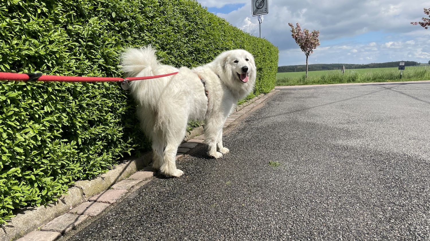 Da haben wir gleich einen schönen Spaziergang gemacht. Durch die Siedlung. Ich bin wieder ganz lieb gewesen. Und nach dem Spaziergang habe ich mich in meinem Garten ausgeruht.