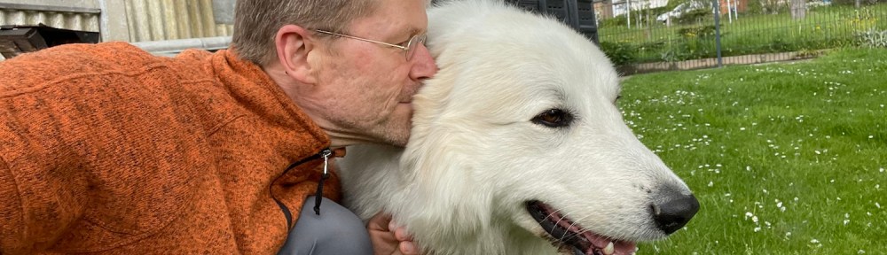 Nachmittags bin ich mit meinem großen Mensch in meinem Garten gewesen. Der hat um meinen Pool herum sauber gemacht. Mit einer Wasserspritzmaschine. Die hat Lärm gemacht. Ich habe mich dann an den sauberen Poolrand gelegt. Und wir haben in meinem Garten gekuschelt.