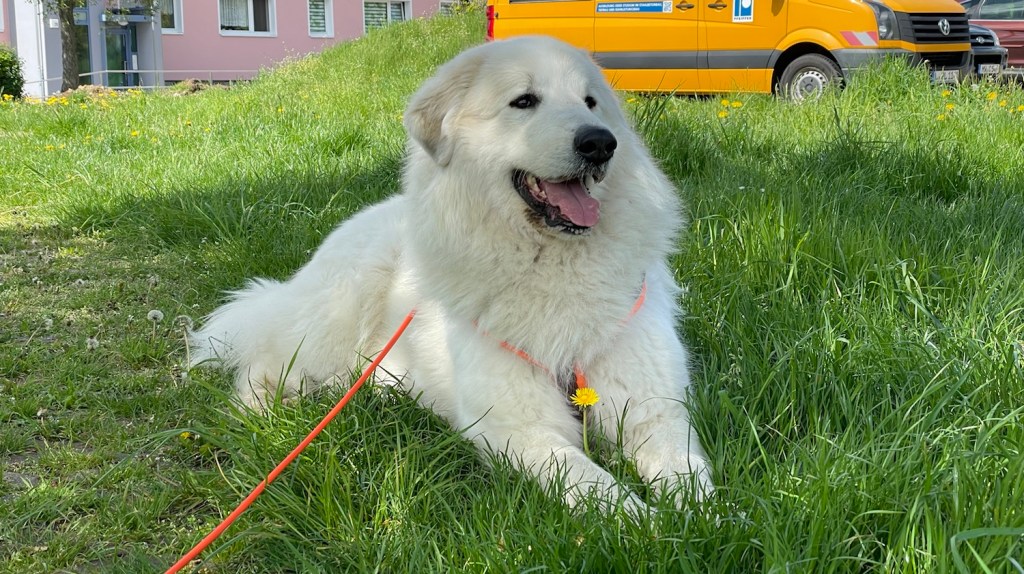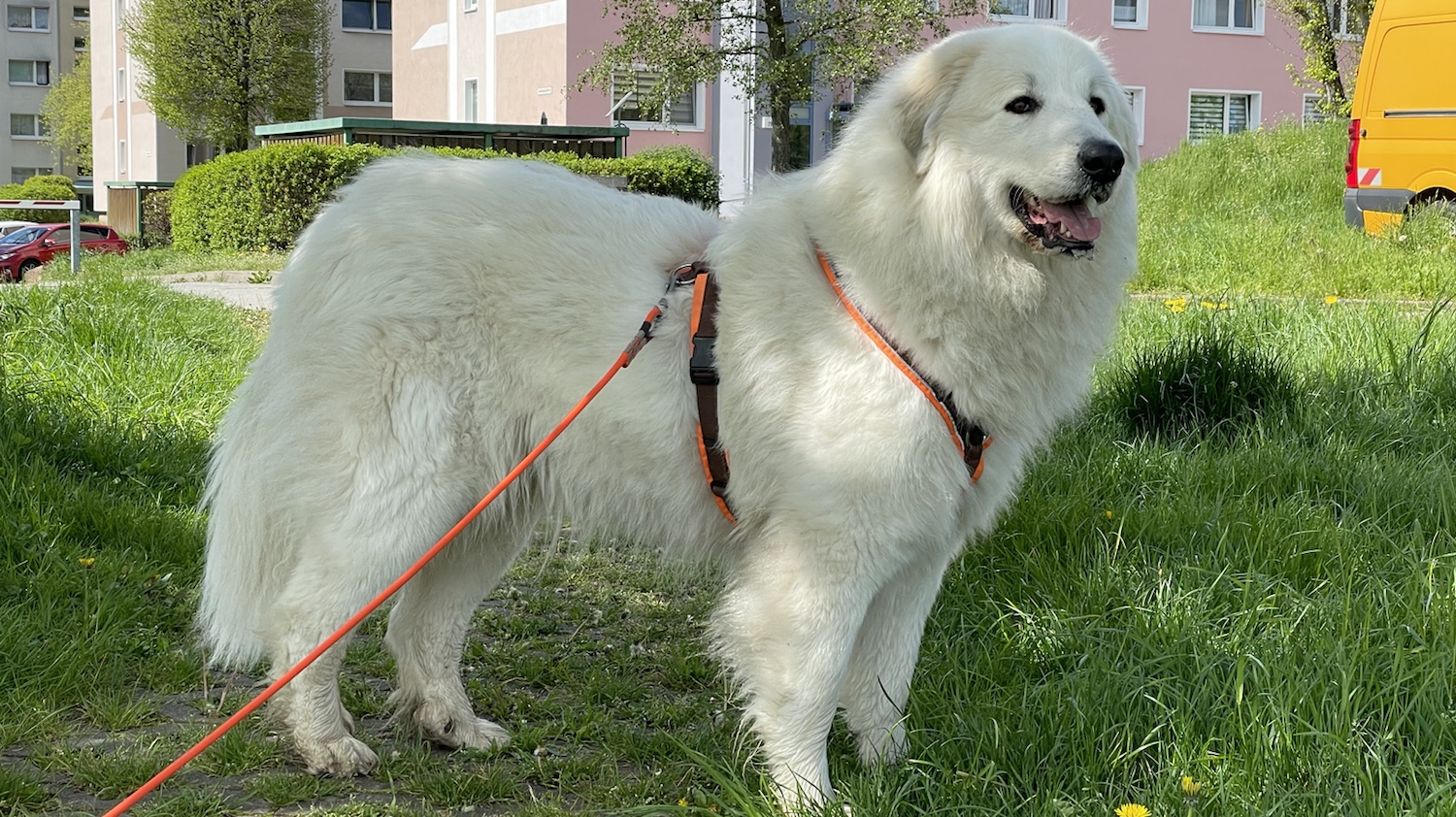 Gleich nach dem Frühstücksfuttern und nachdem mein großer Mensch gefrühstücksfuttert hat sind wir losgewandert. Durch mein Wohngebiet zur großen Wiese hinter meinem Wohngebiet.