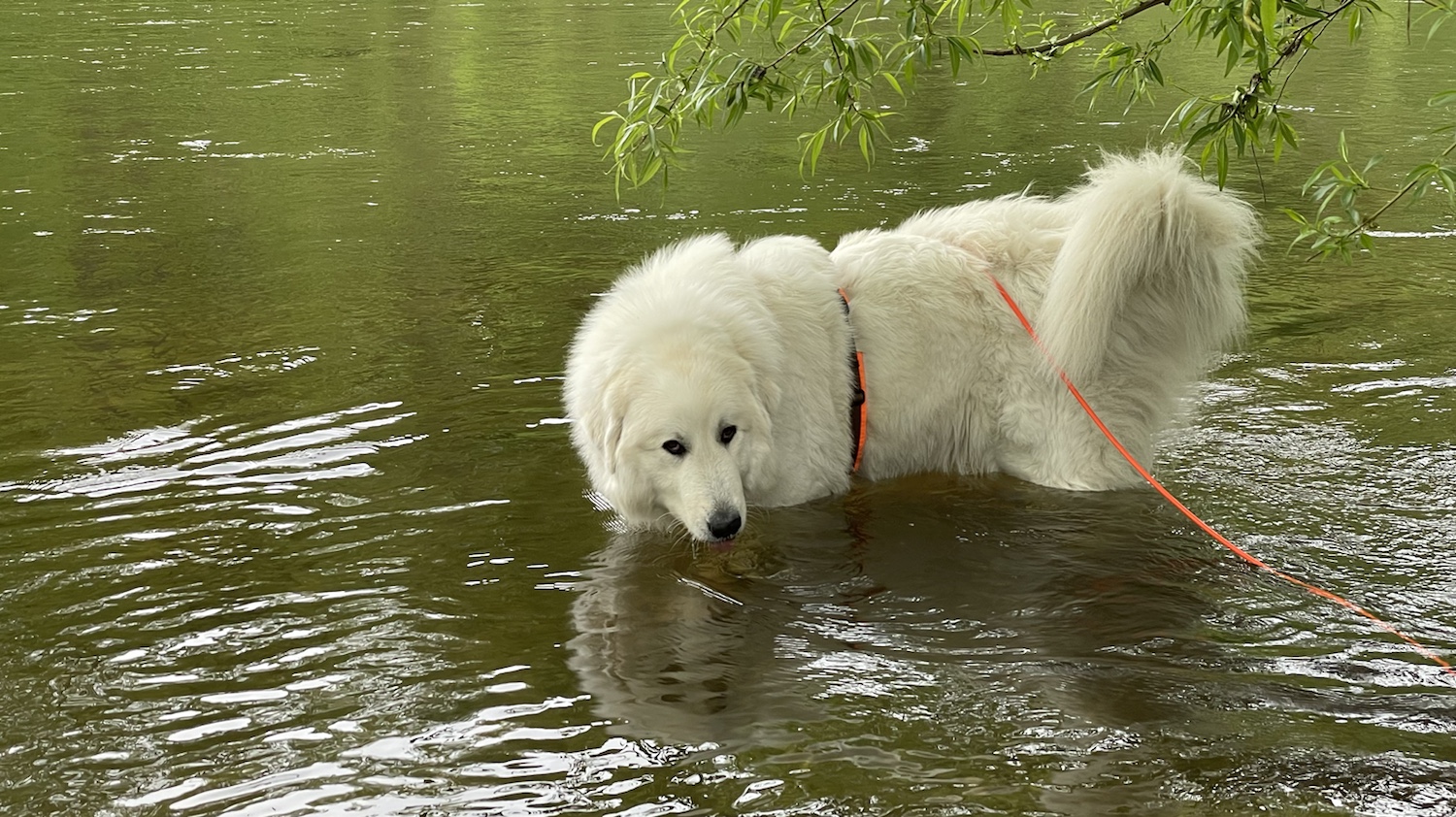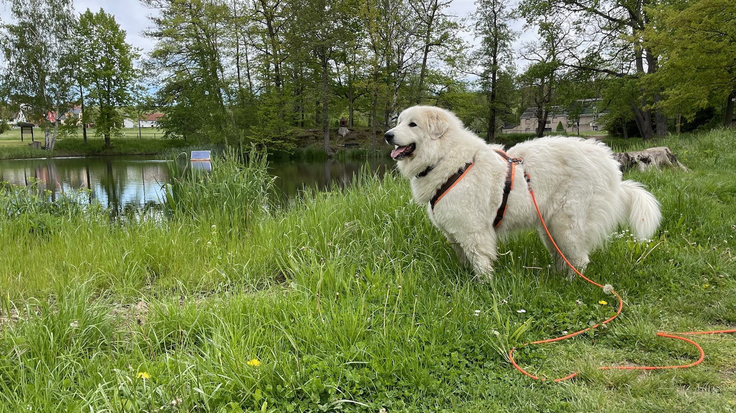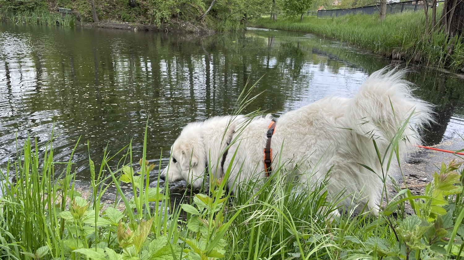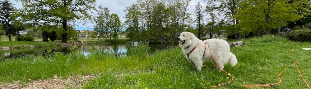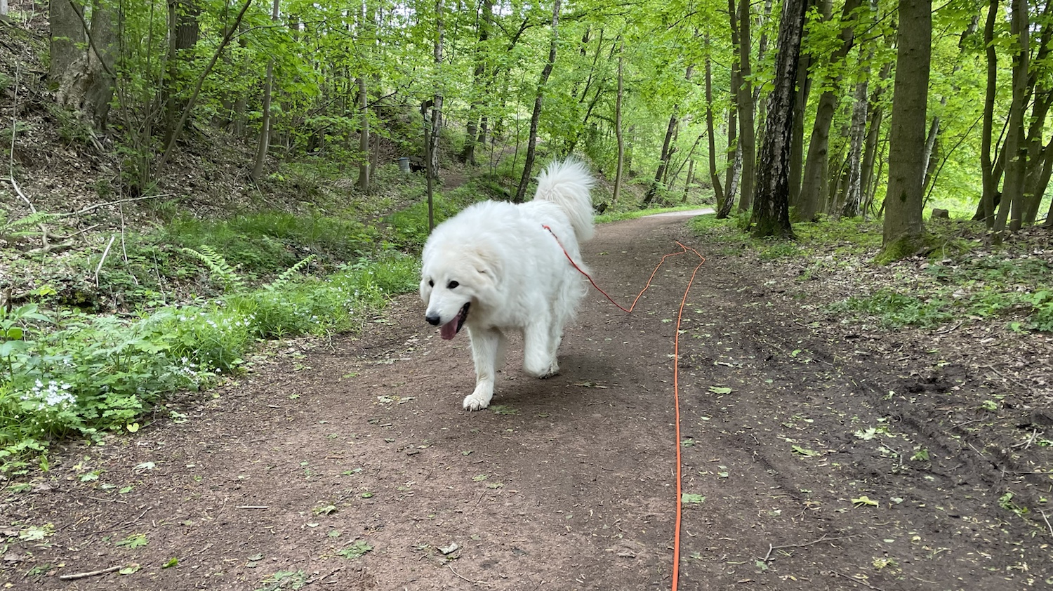 Ich habe die Menschen erstmal durch den ganzen Stadtpark geführt. Bevor wir in den Goethehain sind waren wir noch bei meiner großen Menschin im Garten. Da habe ich getrunken. Und dann habe ich die Menschen durch den Goethehain geführt. Eine ganze Runde. Danach sind wir wieder durch den Stadtpark nach Hause gegangen.