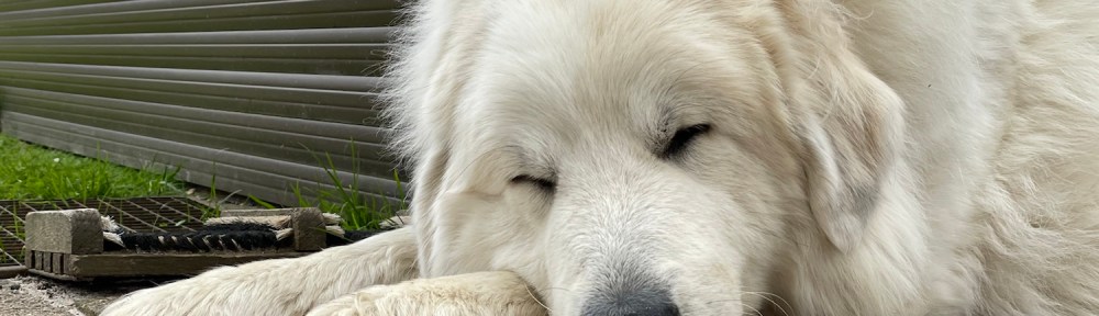 Die kleine Pyrenäenbergprinzessin Annastasia Isabella Prinzessin Idefix vom Ehrenberger Hof, das bin ich, die Bella, hat mal wieder wunderschön geschlummert. Und heute früh habe ich mit meinem großen Mensch gekuschelt und danach gleich gefrühstücksfuttert. Leberwurschtbrot mit Leberwurscht drauf. Und hinterher gleich noch einen großen Topf voll Frühstücksfleisch. Ich hatte Hunger.