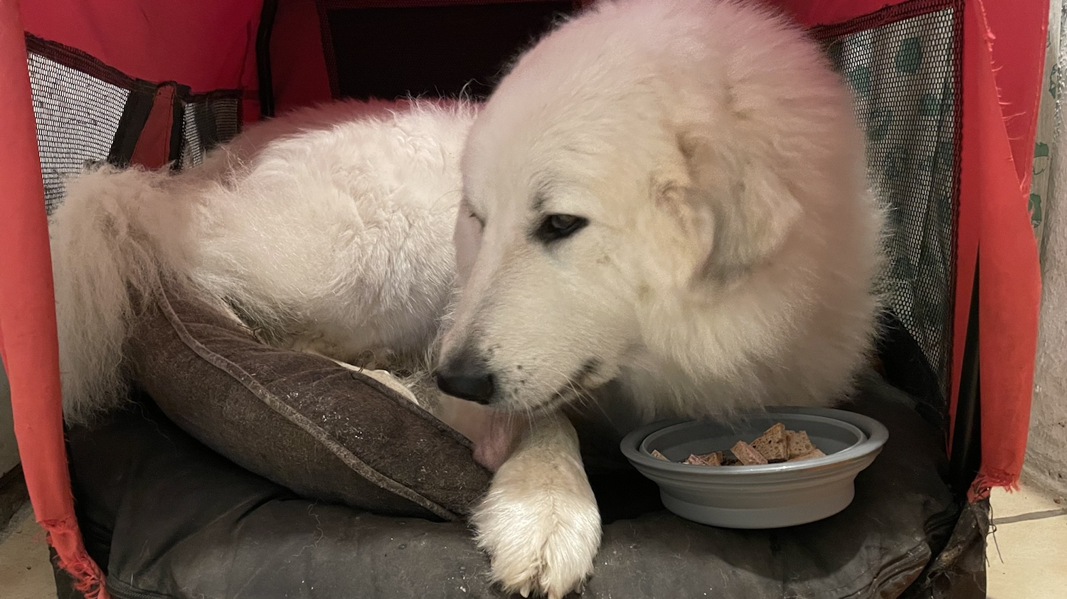 Aber dann sind wir nach Hause und in meine Kellerwohnung. Ich habe noch zu knabbern bekommen und dann in meinem kleinen roten Ferienhäuschen geknabbert und später geschlummert. Gute Nacht! 🐶👸🏼