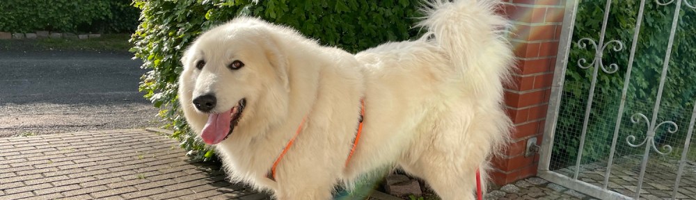 Mein großer Mensch ist erst spät von seiner Arbeit nach Hause gekommen. Und da gab es gleich mein Abendfutter. Ganz viel leckeren Rindermix habe ich gefuttert und danach gleich noch Hühnerfüße. Dann habe ich auf meinen großen Mensch und auf meinen Abendspaziergang gewartet. In meinem Garten.