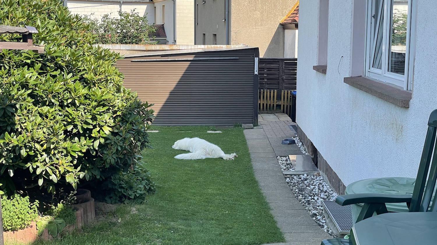 Heute hat die kleine Bella mal nichts gefrühstücksfuttert. Weiiil, es ist doch so warm. Aber schön geschlummert habe ich. Und mit meinem großen Mensch gekuschelt. Früh. Zur Begrüßung. Danach bin ich gleich raus in meinen Garten.