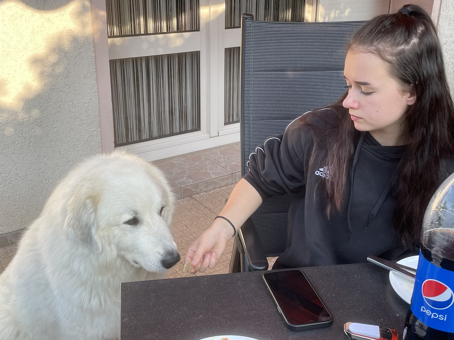 Abends haben wir dann grilliert. Auf meiner Terrasse. Die Bella hat auch was bekommen. Eine Bratwurst und einen Käse. Grilliert!