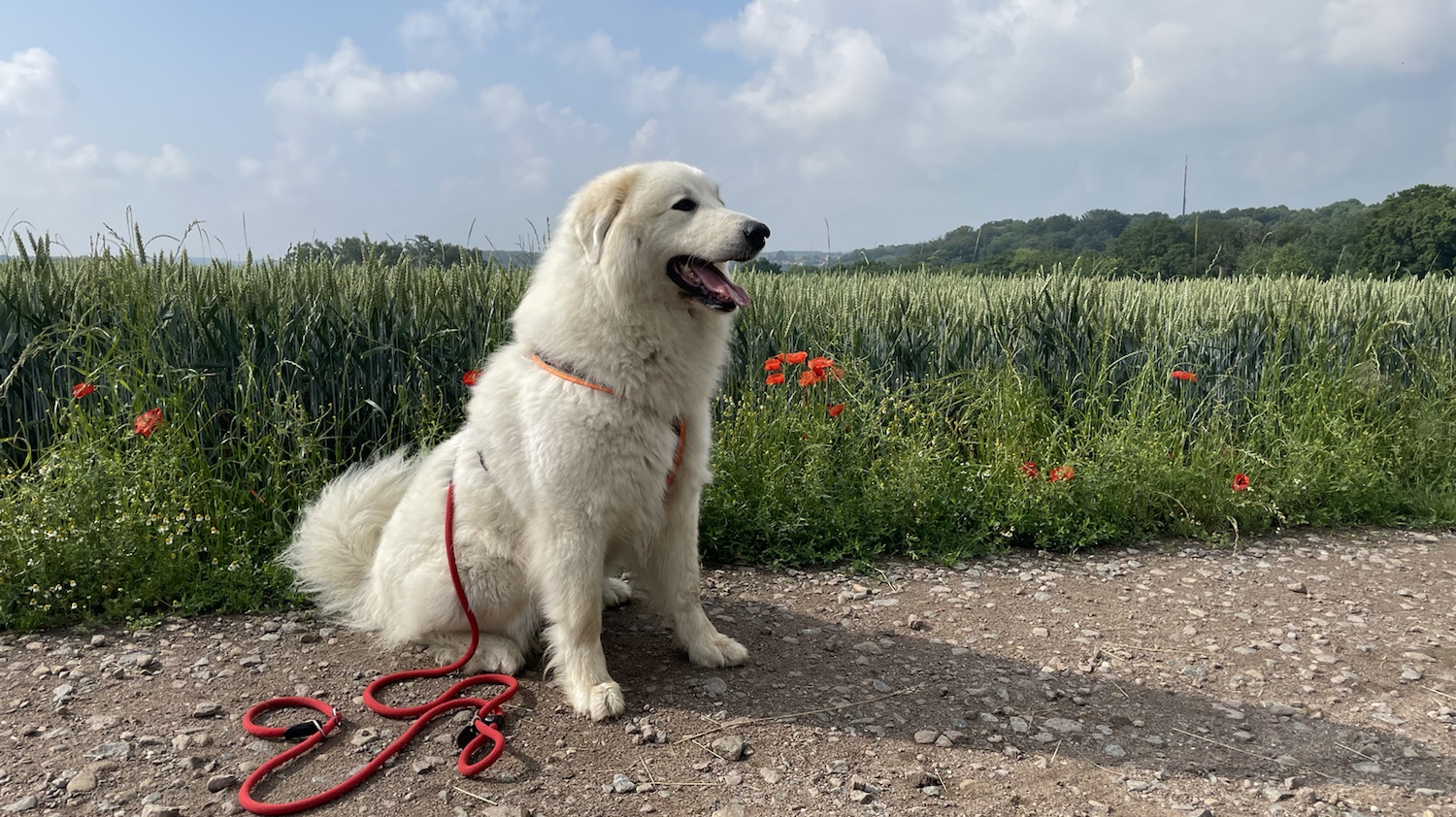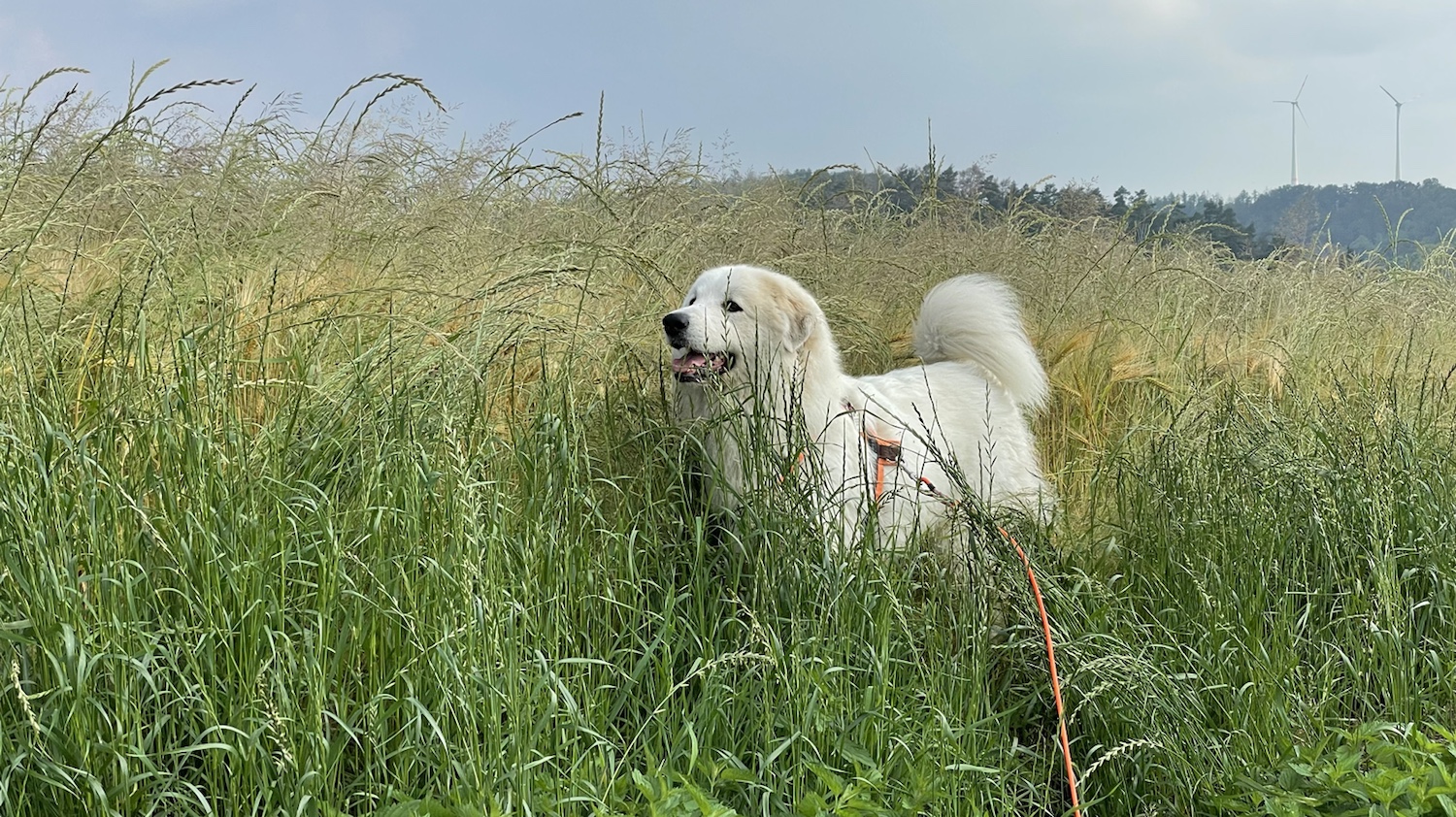 Mein großer Mensch hat auch erstmal gefrühstücksfuttert. Aber dann sind wir gleich losgewandert. Zu meinem großen Feldweg. Und da sind wir immer weiter auf dem großen Feldweg gelaufen und da aar plötzlich jemand. Ein Fuchs. Mitten auf dem großen Feldweg. Da wollte ich gleich hin. Aber der Fuchs hat geguckt ist erst auf die eine Seite vom Feldweg gegangen und dann auf der anderen Seite rein ins Feld. Und weg war er.