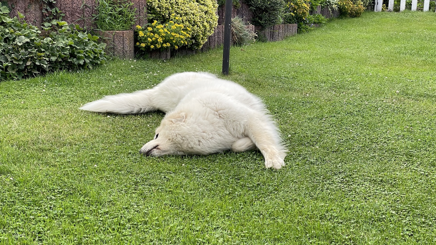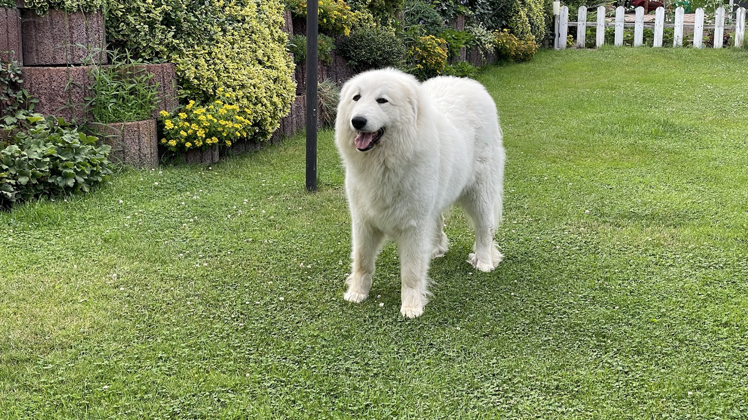 Später bin ich wieder mit meinem Menschenopi und meiner Menschenomi in meinem Garten gewesen. Ich passe immer auf alles auf. Das ist meine Aufgabe. Ich bin eine Herdenschutzhündin!