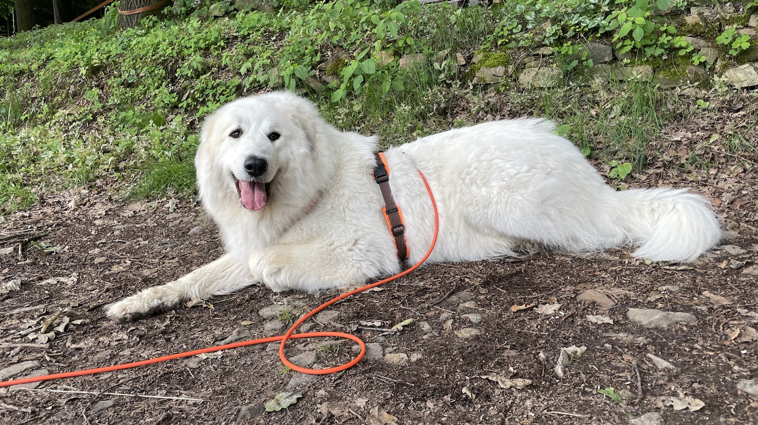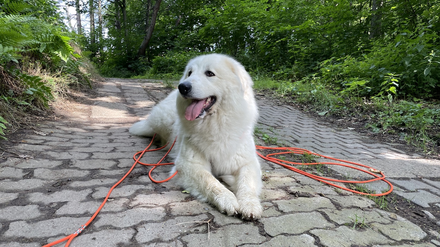 Dann sind wir weiter eine schöne große Runde durch den Wald spaziert und auf dem Rückweg konnten wir nochmal in den kleine Bach rein und haben auch nochmal schön Wasser getrunken.