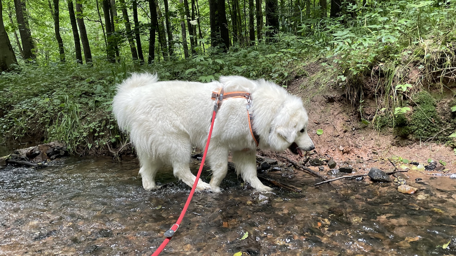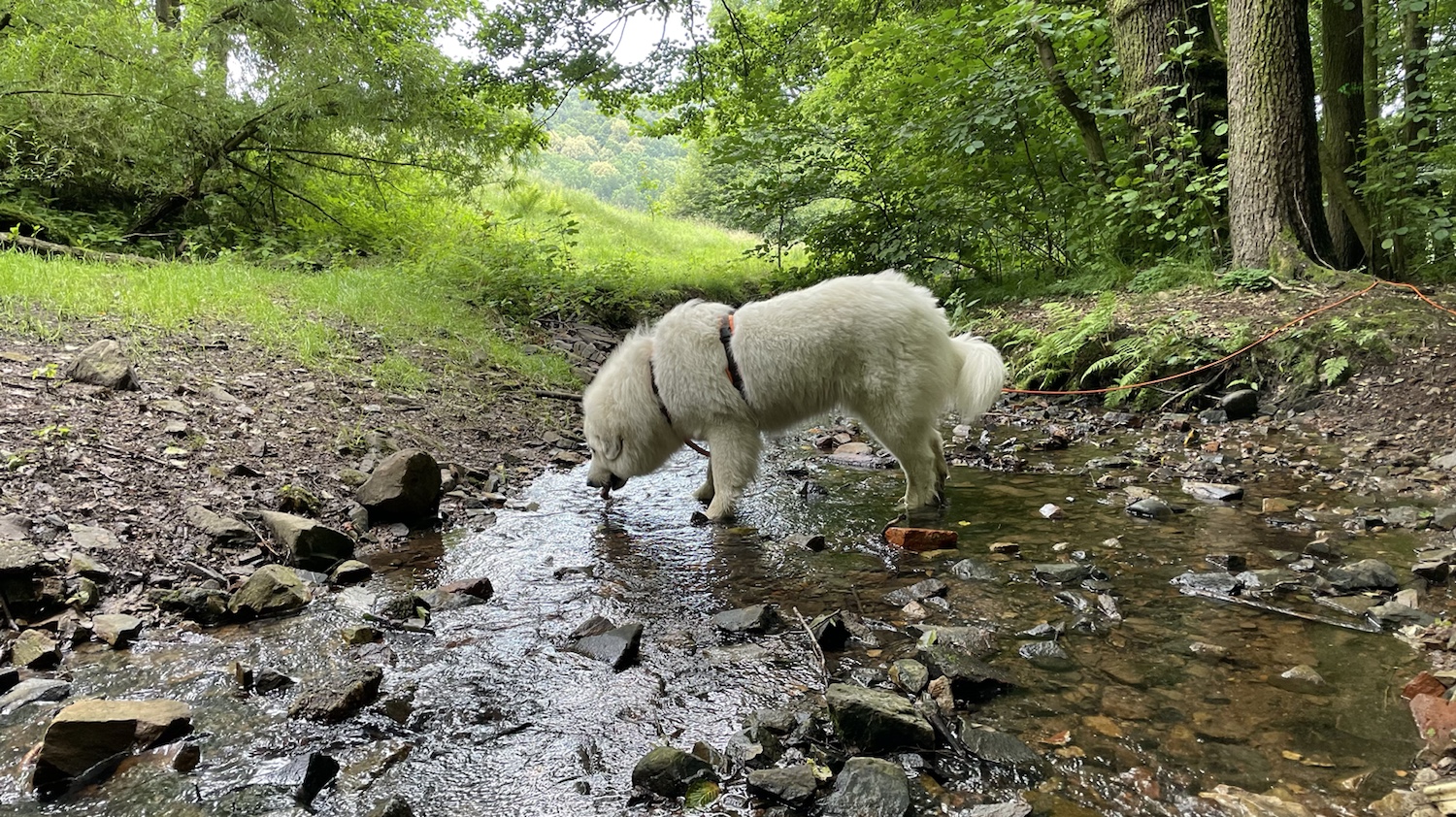 Nach der Pause bin ich mit meinem großen Mensch zum kleinen Bächlein gegangen und dort habe ich nochmal schön getrunken.