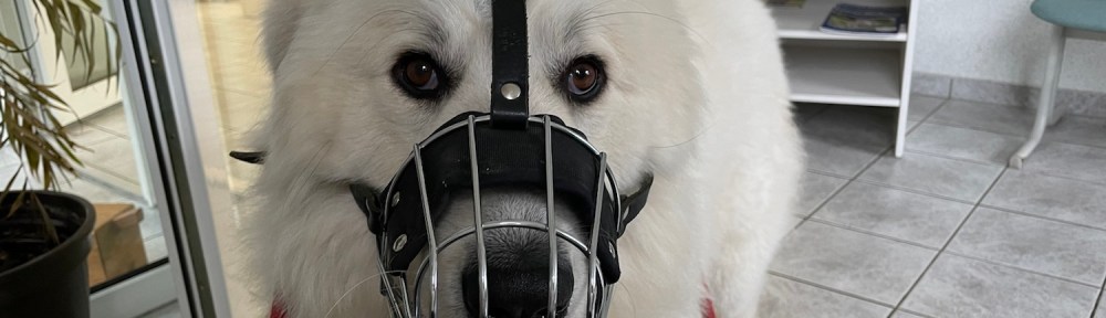 Ich habe heute mal wieder meinen Nasenzaun aufgesetzt. Den hatte ich ganz lange nicht. Zuerst mußte ich warten. Da war dann eine Mietzekatze im Wartezimmer. Die war ganz lieb. War ja auch ein Junge. Ein Kater.