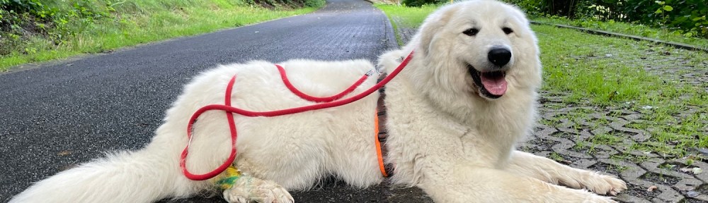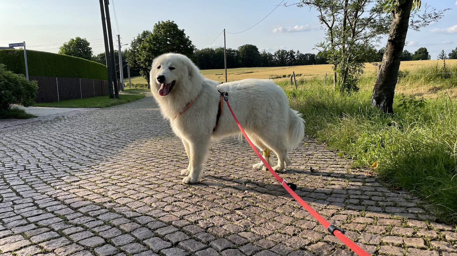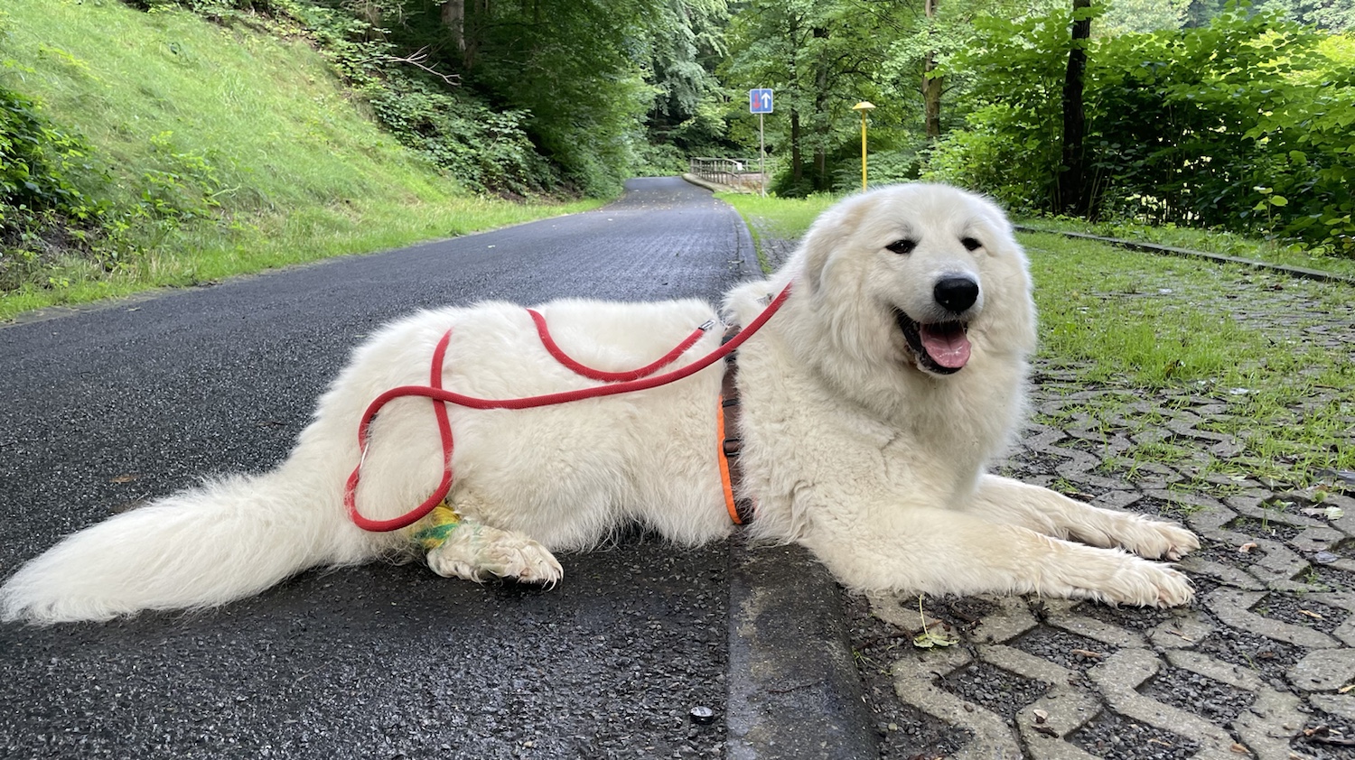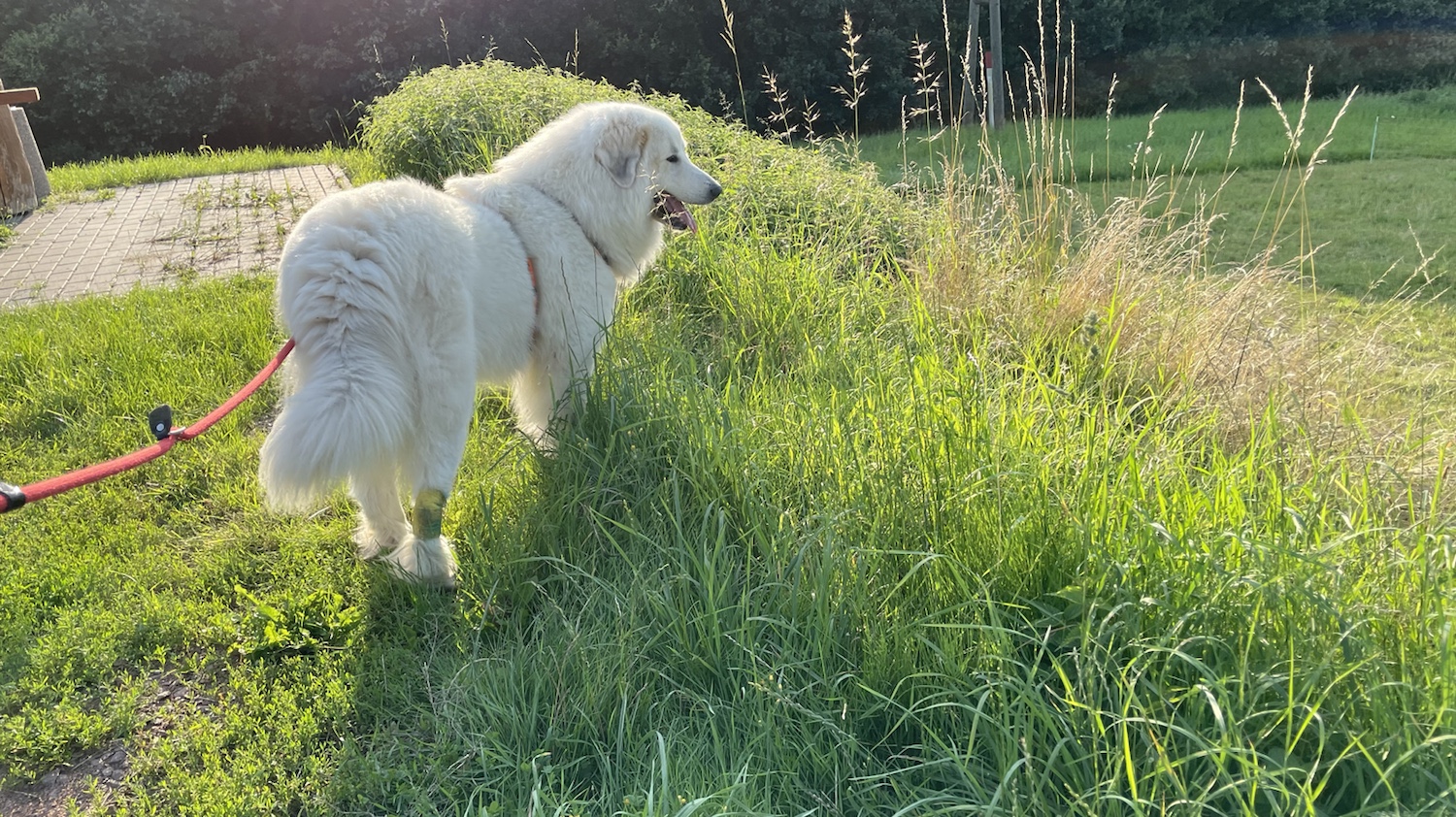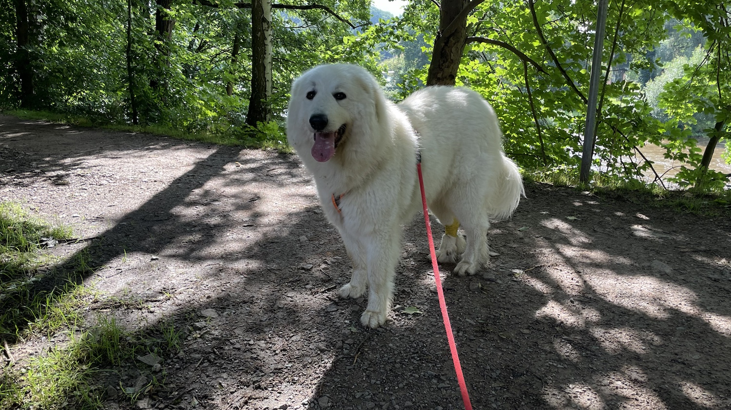 Ich bin bei Menschenomi und Menschenopi auf meiner Terrasse gewesen. Nachmittags ist Besuch da gewesen. Den habe ich aber nicht reingelassen. Obwohl ich alle kenne. Aber da muß erst mein großer Mensch kommen und das erlauben. Ich bin gelobt worden. Weiiil, ich bin eine Herdenschutzhündin und ich muß alles bewachen. Das ist meine Aufgabe.