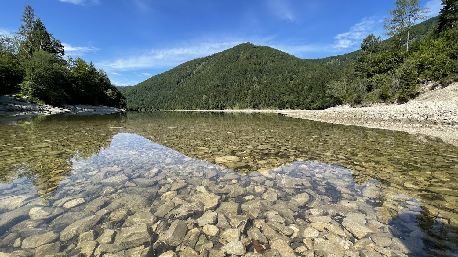 Nach dem Essen fahren wir den Berg runter ins Tal. Heute soll es zum Wiestalstausee gehen. An dem sind wir ja schon auf der Anreise vorbeigefahren. Wir entscheiden uns für eine der zahlreichen kleinen Parkbuchten etwa in Seemitte. Eine gute Entscheidung, wie sich herausstellen soll.