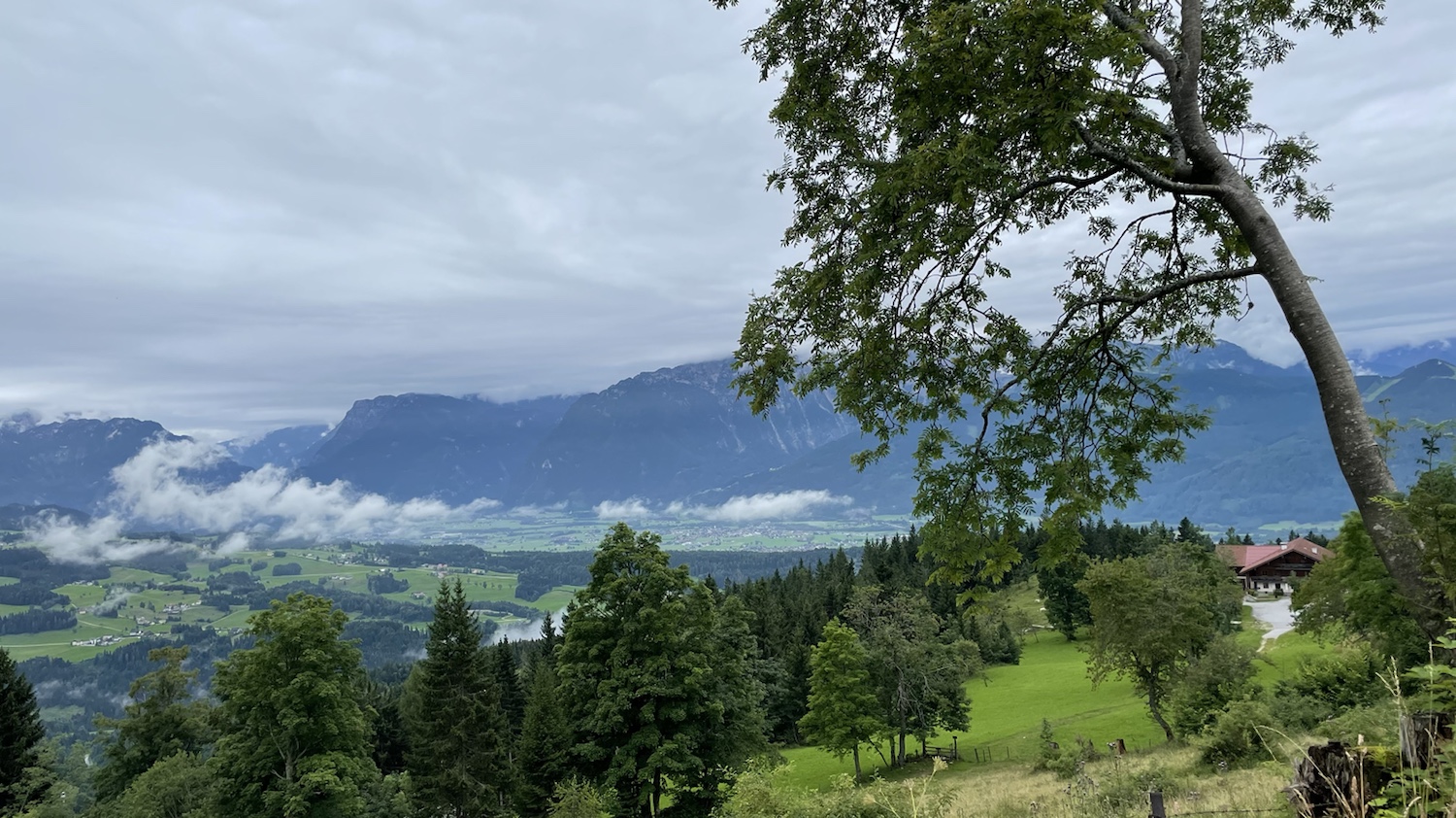 Dann machen wir uns auf den Weg zu unserer ersten Mini-Wanderung. Wir gehen vorbei am Gasthof „Zillreith“ und wandern dann weiter bergauf Richtung Formau. In der kleinen Siedlung biegen wir dann schon wieder ab und es geht bergab zurück bis zum „Halleinerhaus“. Hier lassen wir uns zum Mittag nieder. Es gibt