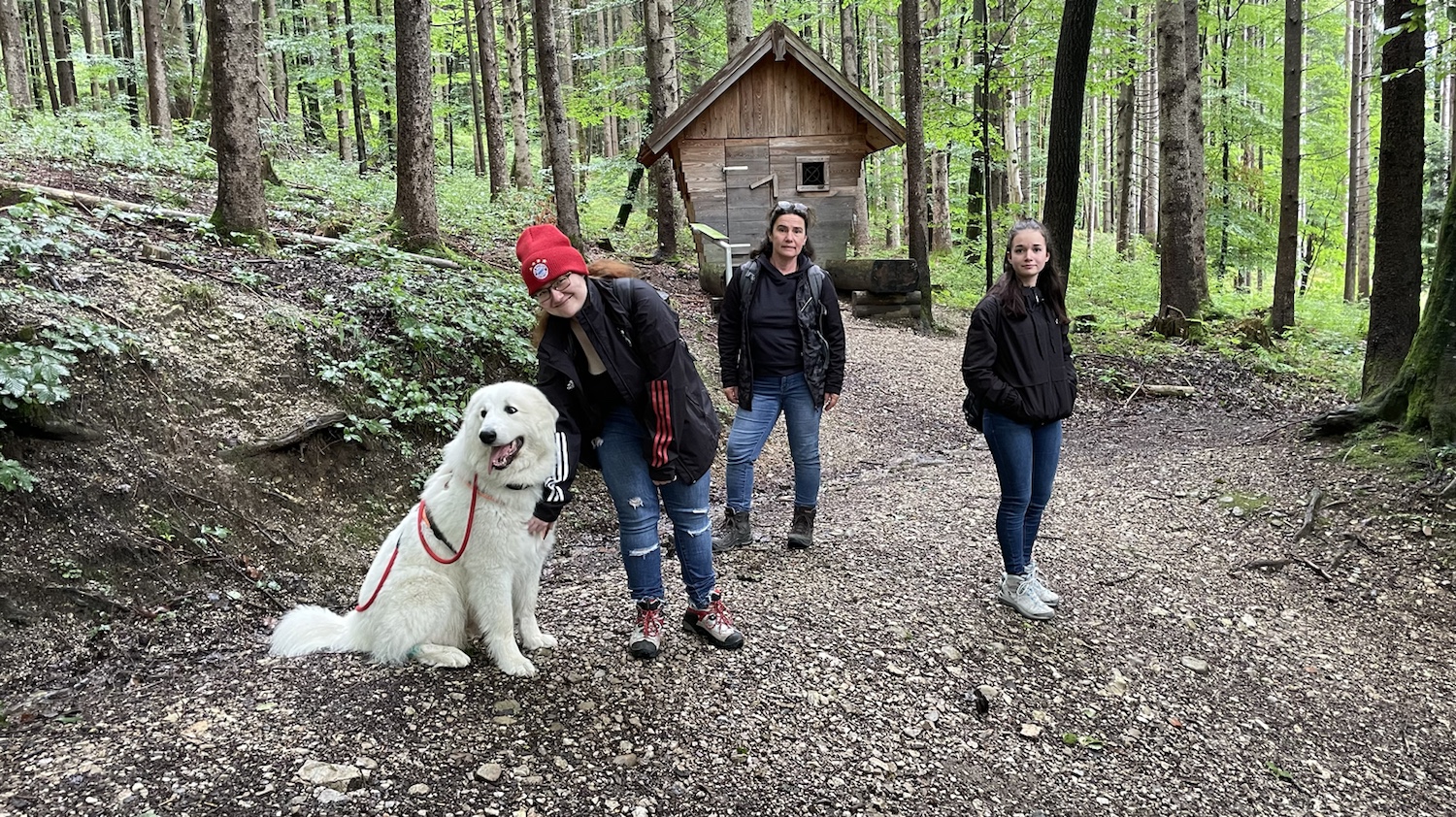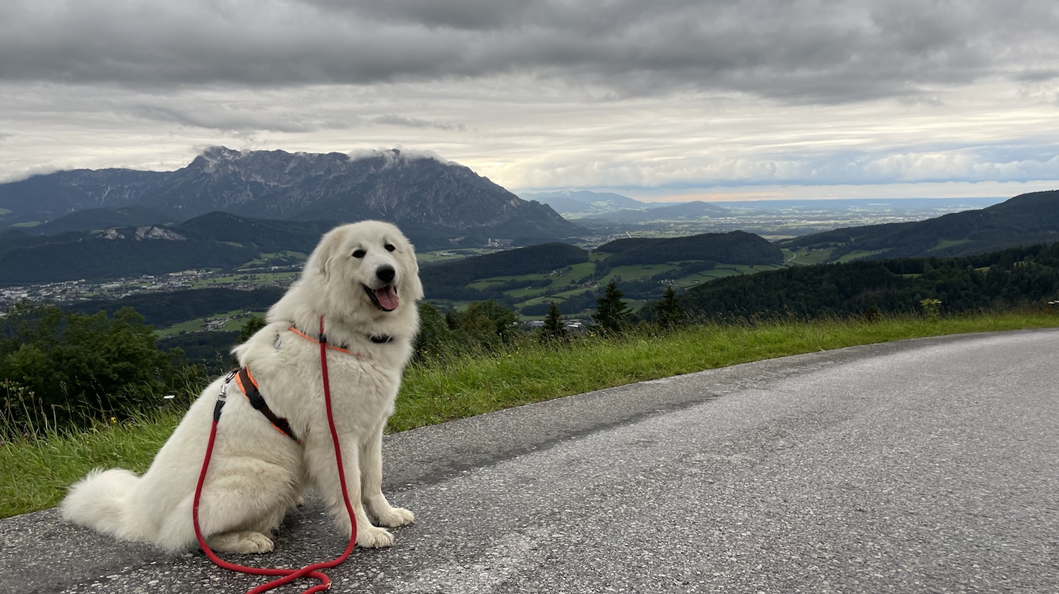 Am Abend noch ein kleiner Spaziergang mit Bella, diesmal bergab bis zum Gasthaus „Alpenrose“. Die letzten Meter zum Haus, bergauf, rennen wir beide allerdings, da ein kleines Gewitter aufzieht und es zu regnen beginnt. Nach dem Abendessen machen wir es uns wieder in unserem Ferienhaus gemütlich.