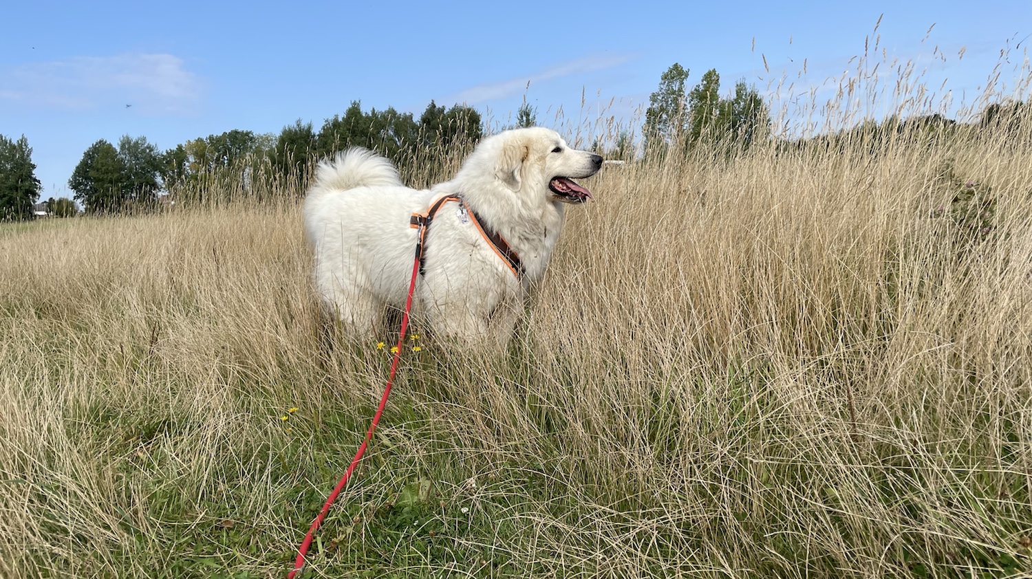 Die Bella hat heute ein Wochenende. Und da hat sie schön ausgeschlummert. Die Bella. So ist das nun mal. Nach dem Frühstücksfuttern sind wir dann losgelaufen, mein großer Mensch und ich, die Bella. Morgenspaziergang!
