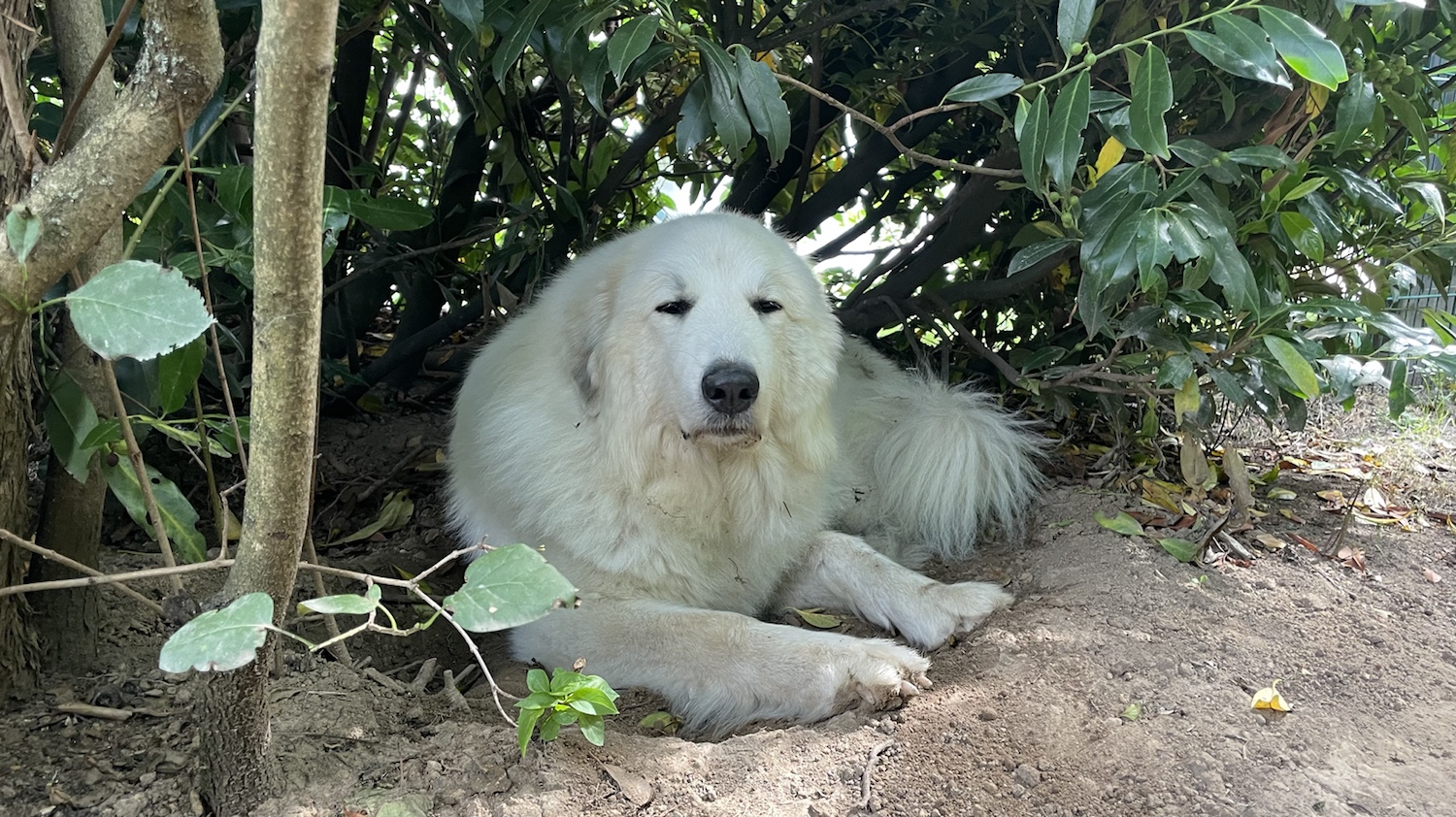 Nachmittags sind wir im Garten gewesen. Mein großer Mensch hat den Pool sauber gemacht und ist dann drin rumgeschwommen. Die Rasenhunde sind durch den Garten gebummelt. Einer vor dem Haus und einer dahinter, in meinem Garten. Und meine große Menschin hat dann auch noch Gartenarbeit gemacht.