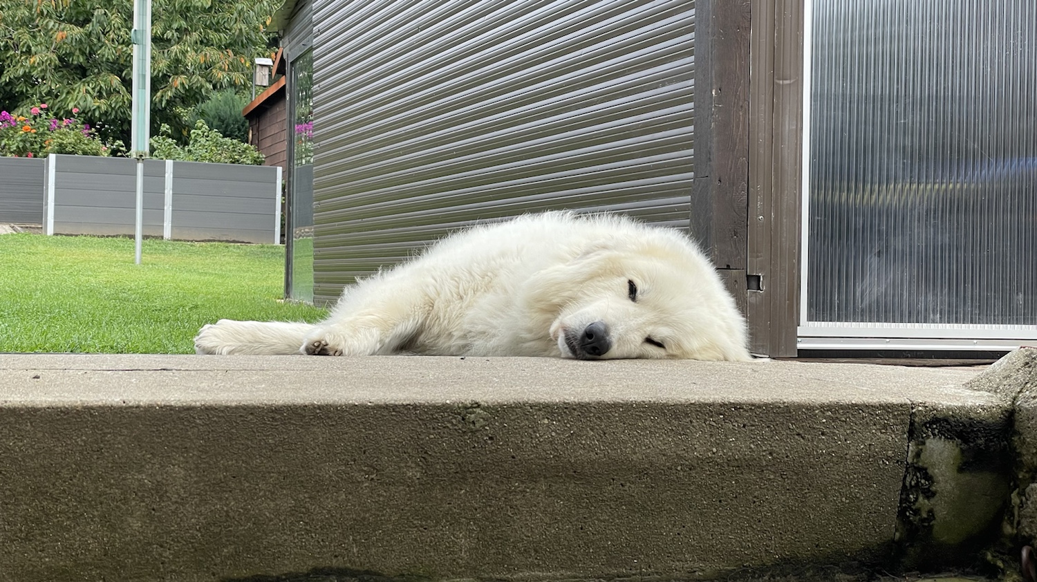Ich war heute früh noch ganz müde. Aber ich habe trotzdem mit meinem großen Mensch gefrühstücksfuttert. Ganz zeitig. Danach konnte ich nochmal schlummern, bis ich in meinen Garten gegangen bin.