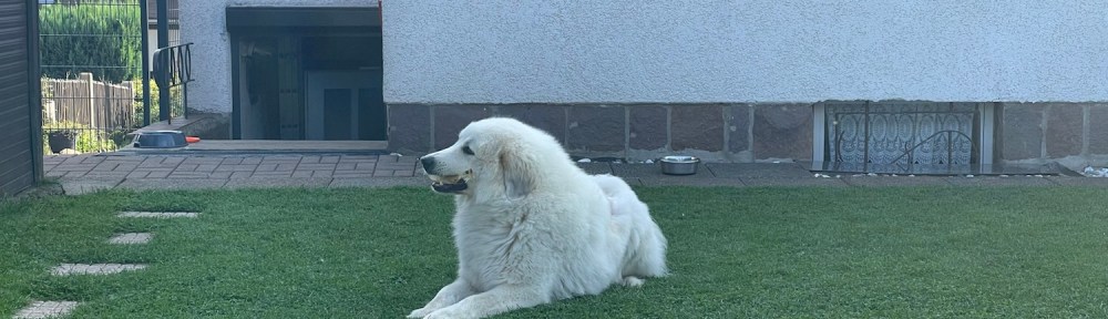 Nachmittags ist mein großer Mensch wieder Rad gefahren. Da habe ich ihn draußen wieder bewacht. Das kann ich, ich bin eine Herdenschutzhündin! Weil heute Mittwoch ist, habe ich auch wieder schön gesungen. Mit der Sirene. Die macht Musik und ich singe wie eine kleine weiße Wölfin. Und dann war ich mit meiner großen Menschin in meinem Garten.