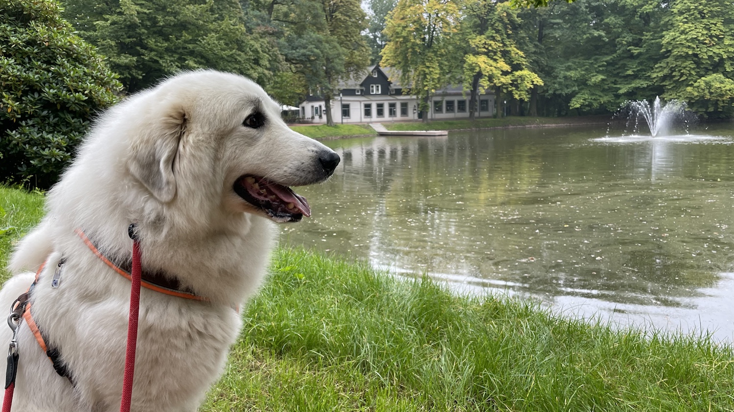 Dann sind meine Menschenschwestern zu mir gekommen und haben mich begrüßt und gleich danach bin ich mit meinem großen Mensch losgewandert. Wir sind heute wieder in den ganz schönen Park mit dem großen Ozean gegangen. Der Ozean heißt Schwanenteich, weiiil, da wohnen ganz viele Enten und das ergibt gar keinen Sinn. So!