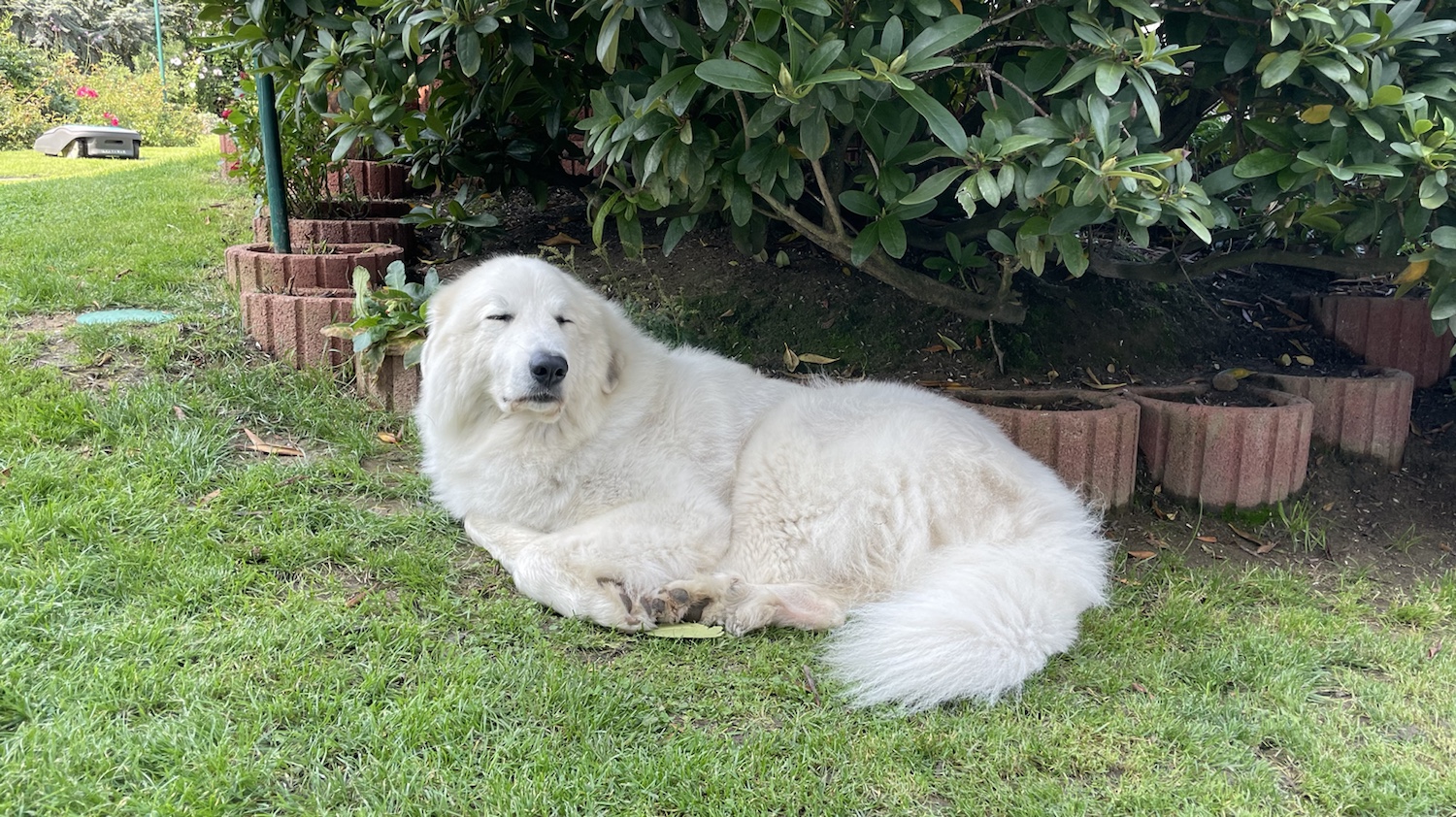 Ich habe heute wieder schön ausgeschlummert. Mein großer Mensch hat mir dann mein Frühstücksfutter gebracht und danach habe ich wieder in meinem Garten gewartet. Zwischendurch habe ich meinen großen Mensch gerufen. Damit der weiß, daß er nicht bummeln darf, weiiil, die Bella will doch ihren Sonntagsspaziergang machen.