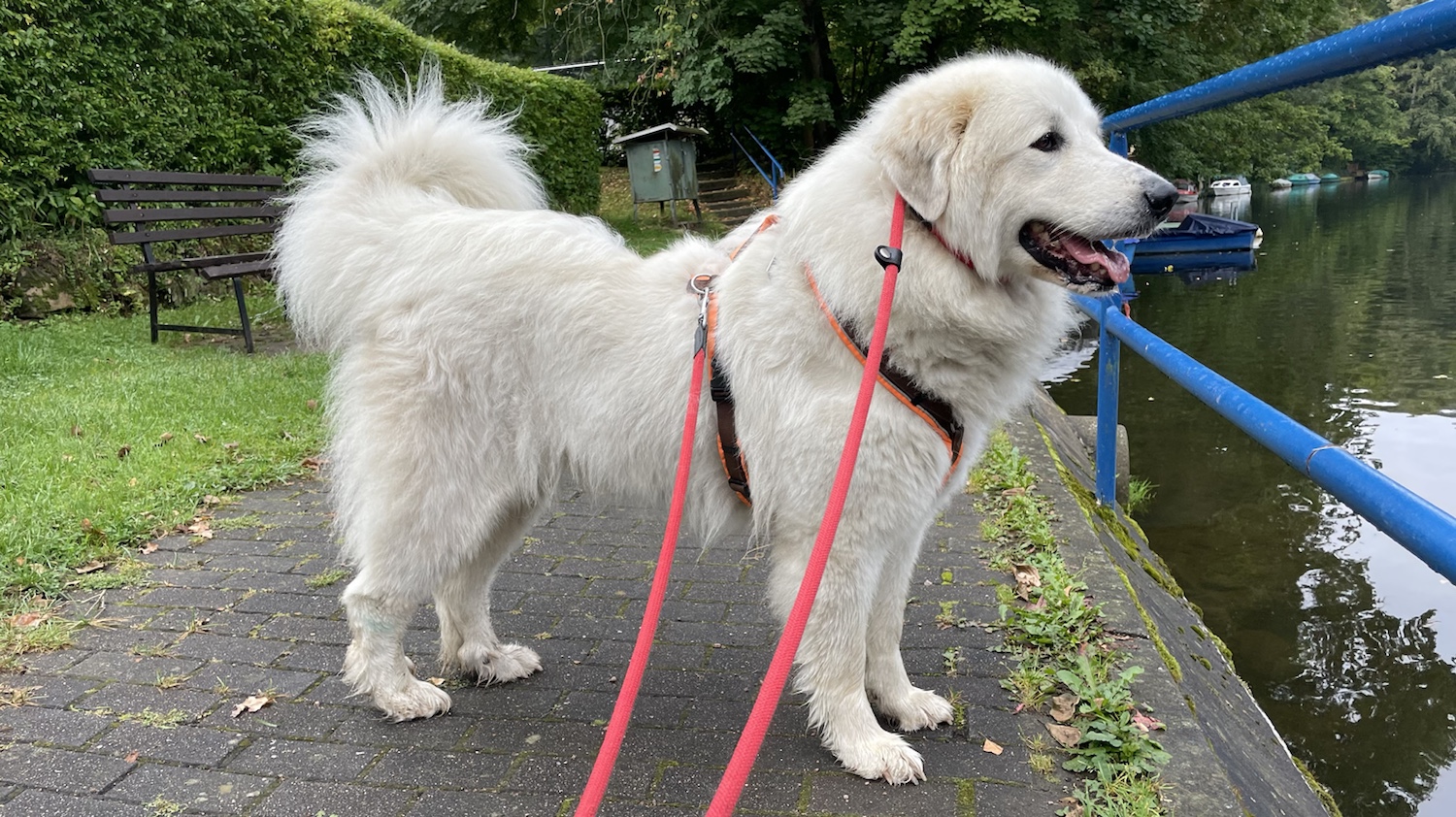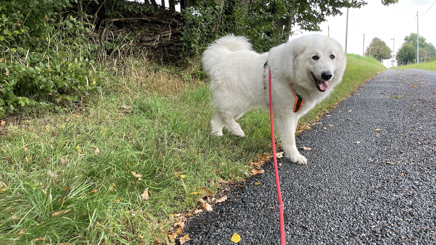 Wir sind heute aber erstmal mit meinem weißen französianischen Auto weggefahren. Meine große Menschenschwester, mein großer Mensch und ich, die Bella. Ich bin eine Pyrenäenberghündin! Eine ganz schön schöne.