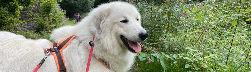 Nachmittags hat mich mein großer Mensch dann angezogen und wir sind mit meinem weißen französianischen Auto ein Stück gefahren. Auf einem kleinen Parkplatz haben wir angehalten. Meine liebe Sonne war auch schon da. Und dann waren ganz viele Hunde von meiner Hundeschule da. Und wir haben eine schöne Wanderung gemacht. Alle zusammen.
