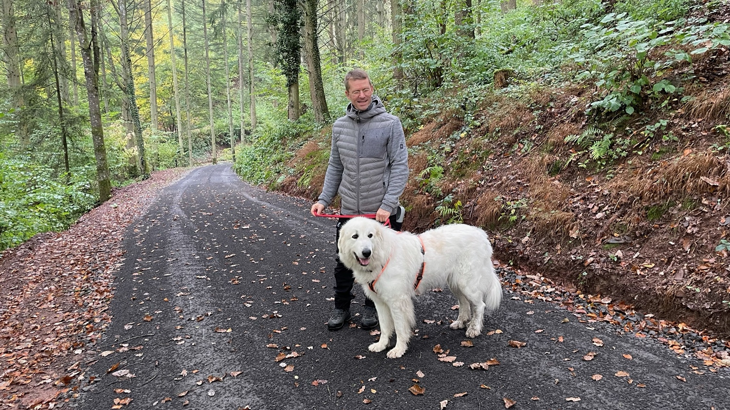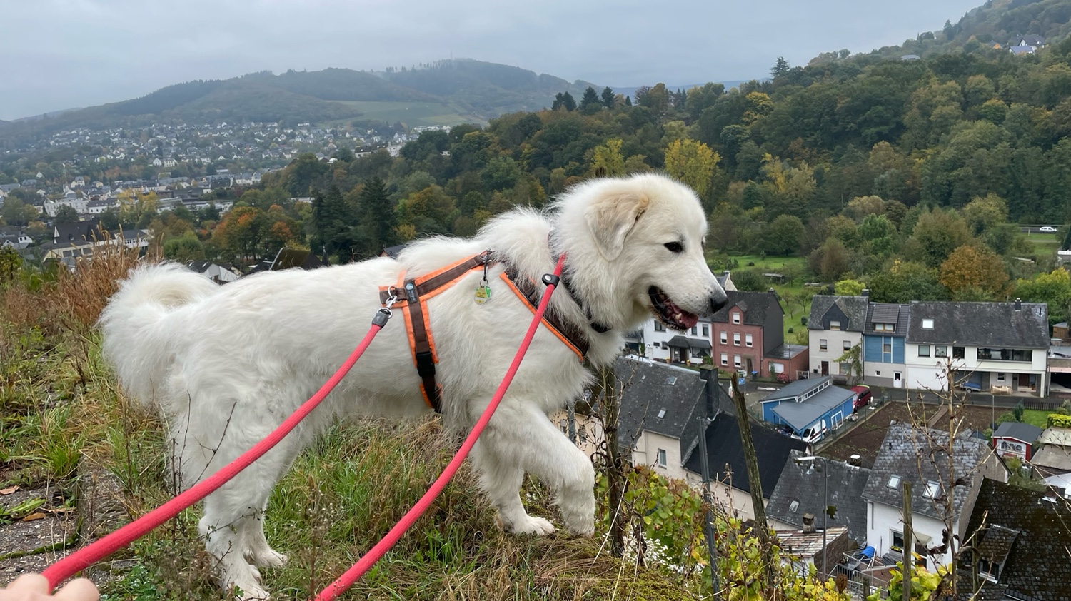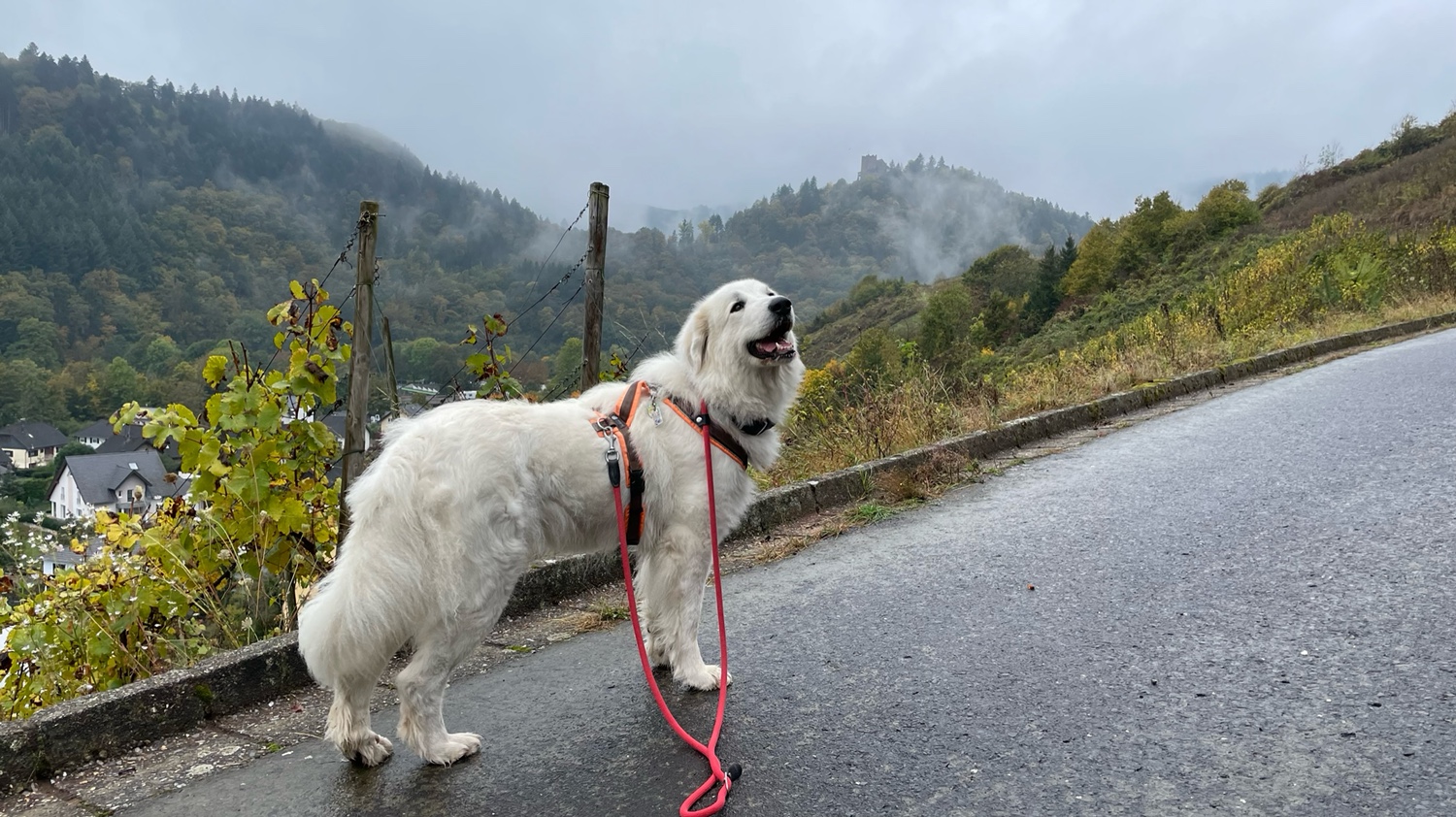 Draußen war alles naß. Deshalb haben wir heute eine Straßenwanderung gemacht. Auch wegen meinem Pfötchen. Wir sind wieder durch die Weinberge gewandert.