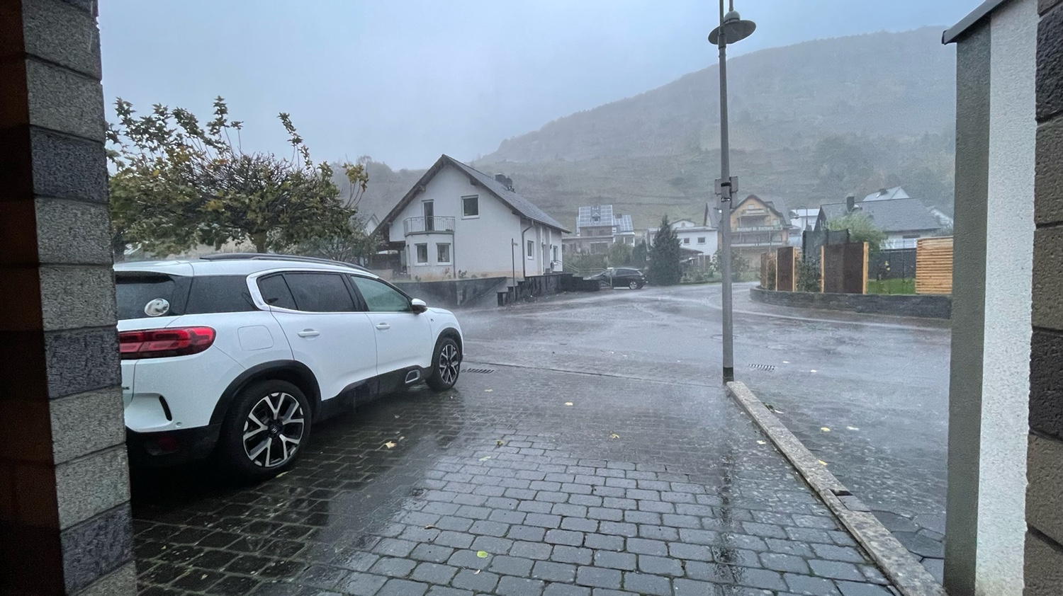 Wir sind dann mit meinem weißen französianischen Auto losgefahren. Meine Menschen wollten mit mir an eine Brücke. Nur zum guggen. Unterwegs war mal Sonne, dann wieder Regen und dann wieder nur graue Wolken.