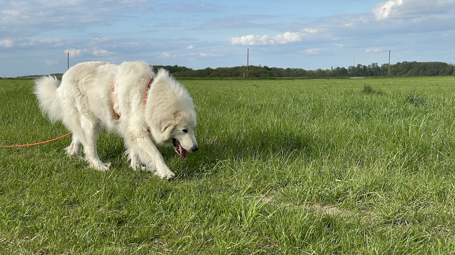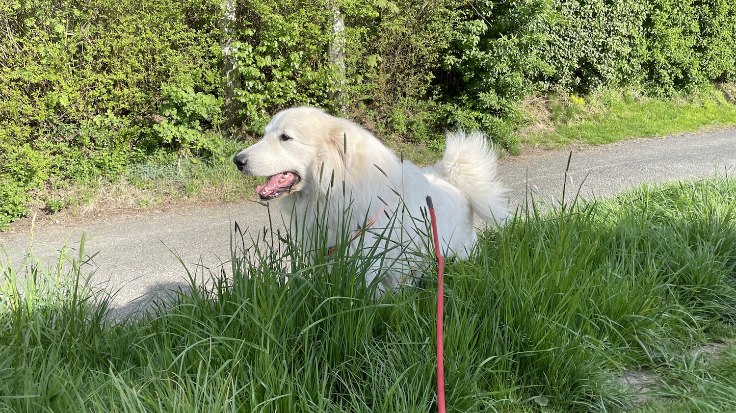Im Wohngebiet haben wir dann noch den Bogolf getroffen. Der ist ein ganz hübscher weißer Schweizer Schäferhund und mein Freund. Ich war auch schon mal in der Schweiz. Als wir in Italien im Urlaub waren. Aber ich bin eine Pyrenäenberghündin, eine Französianerin.
