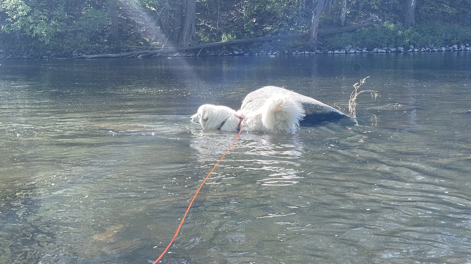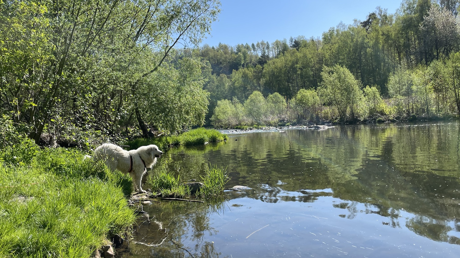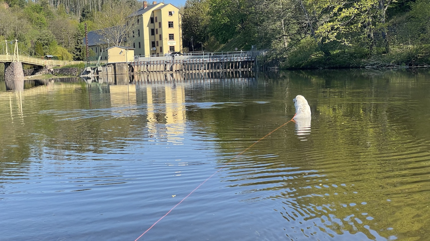 Und dann sind wir weiter zur nächsten Badestelle und da war ich im ganz tiefen Wasser. Einkleines Stück bin ich geschwimmelt. Sagt man doch so, geschwimmelt, oder 🐶🤔.