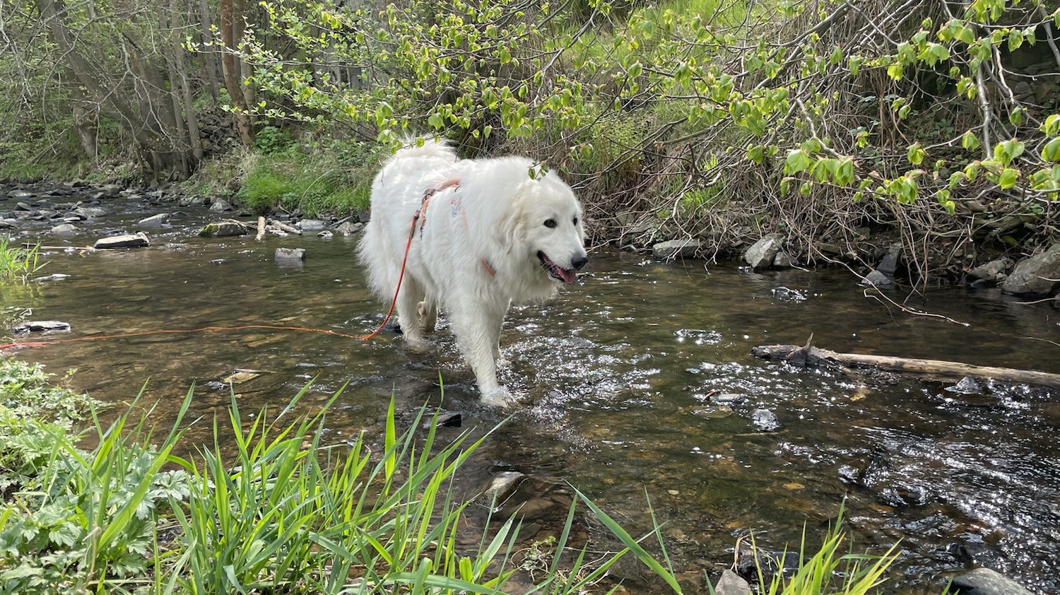 Wir sind dann auf der Straße den Berg runter nach Ringethal und da habe ich nochmal im kleinen Bach getrunken und meine Pfötchen gekühlt. Dann sind wir immer an der Tschooo-Pauuu entlang zurück zur Wackelbrücke.