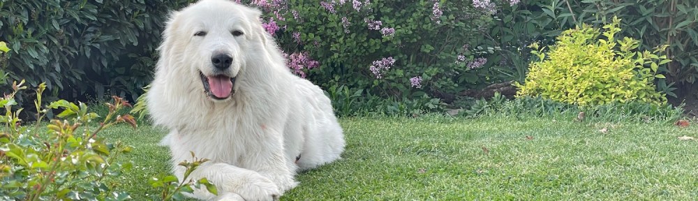 Später sind wir zusammen zu Menschenomi und Menschenopi auf die Terrasse gegangen. Da haben wir auch gekuschelt. Und Abendfutter gab es auch. Habe aber nichts gefuttert. Dafür habe ich meinen Fleischknochenverbuddelt. Im Garten. Mein großer Mensch wollte den aber gleich wieder aus der Erde rausholen. Da habe ich den noch tiefer eingebuddelt. Ich kann gut buddeln. Ich bin eine Pyrenäenberghündin!