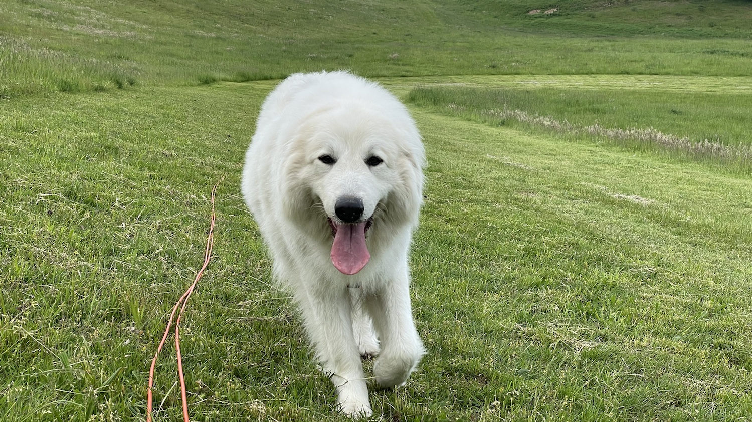Dann sind wir auf der Wiese am großen Fluß gewesen. Ich bin heute aber nicht ins Wasser gegangen. Nur über die Wiese geflitzt. Danach ging es auf dem Wanderweg ein Stück zurück zur großen Wiese. Da durfte ich dann abgeleint durch das hohe Gras flitzen.