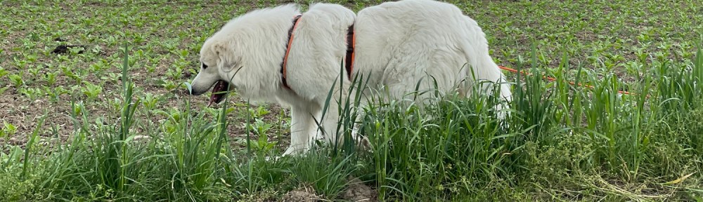 Mit meinem großen Mensch bin ich zum Abendspaziergang heute zu meiner großen Feldwiese gelaufen. Da war ich schon ganz lange nicht mehr. Ich bin ganz schnell über die große Feldwiese geflitzt.