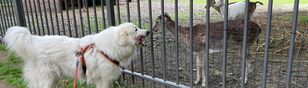 Und dann sind wir noch bei den Rehen gewesen. Die sind wieder zu mir an den Zaun gekommen und haben mir zu meinem Geburtstag gratuliert. Fünf Jahre bin ich heute geworden. Und meine Geschwisterpyris auch.