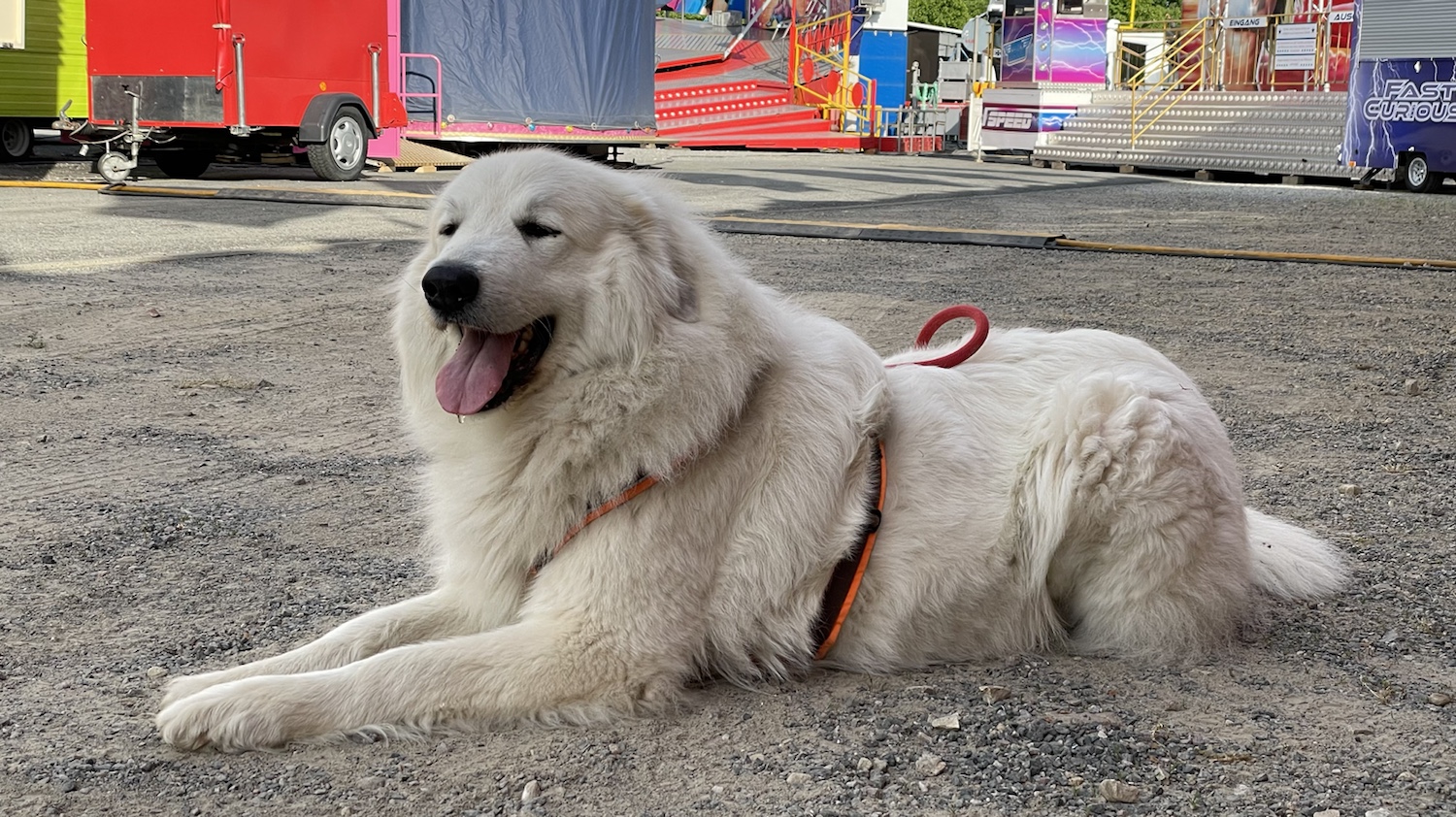 Ich habe ganz lange Pause gemacht. Mit meinem großen Mensch. Aber dann sind wir weitergewandert. Zu meiner kleinen Menschenschwester ihrem Tanzen. Dort habe ich nochmal Pause gemacht. Und da ist meine große Menschin gekommen und die hat meinem großen Mensch eine Flasche gegeben und da hat er für seine Bella, also für mich, Wasser zum trinken geholt. Weiiil, ich hatte ein bißchen Durst.
