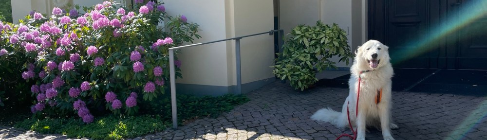 Zum Abendspaziergang sind wir heute wieder durch mein Wohngebiet spaziert. Heute haben wir ganz viele Hunde getroffen. Zwei habe ich angeschimpft, weiiil, die kannte ich nicht. Und zwei habe ich angeschnuffelt, den Labradorianer Frodo und den kleinen weißen Johnny. Das sind meine Freunde.