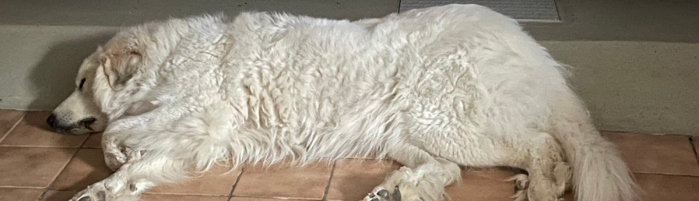 Ich habe auf dem Feldweg geschnuffelt und dann sind wir durch das kleine Wäldchen gewandert. Mein großer Mensch wollte danach gleich wieder zum Wohngebiet. Aber ich nicht. Ich wollte noch zur großen Wiese. Ich bin sehr willensstark. Eine Pyrenäenberghündin bin ich.